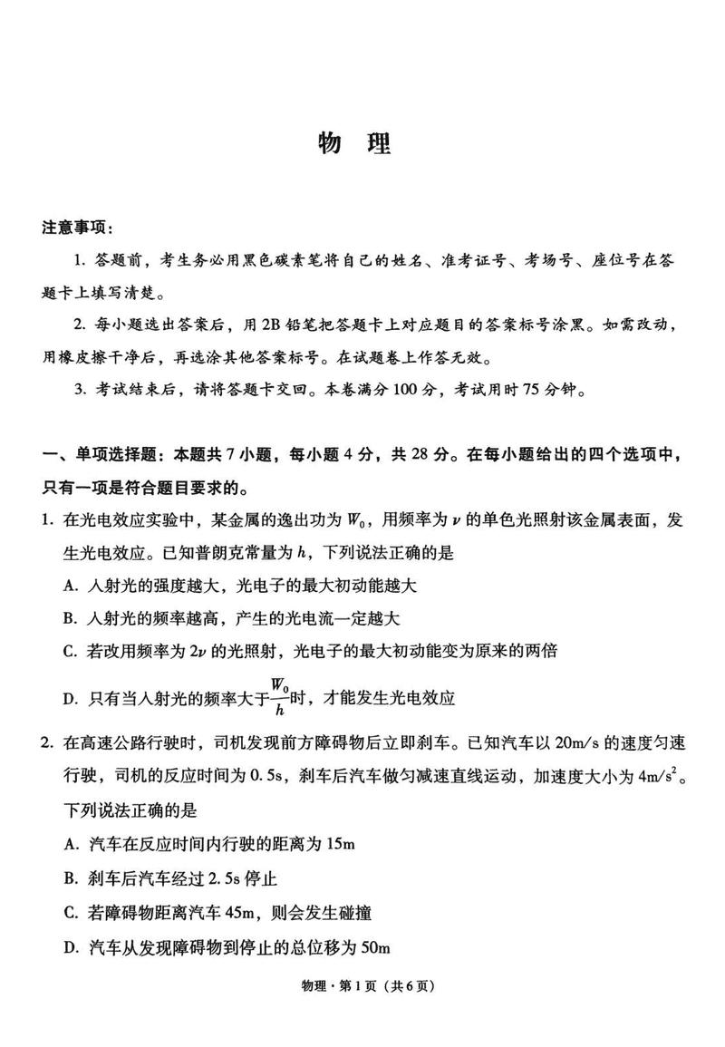 贵阳市、铜仁市2026届高三9月摸底考物理试题质量较高,题型多样,将作为考察考生对相应考点的掌握程度,考后将及时整理试题...