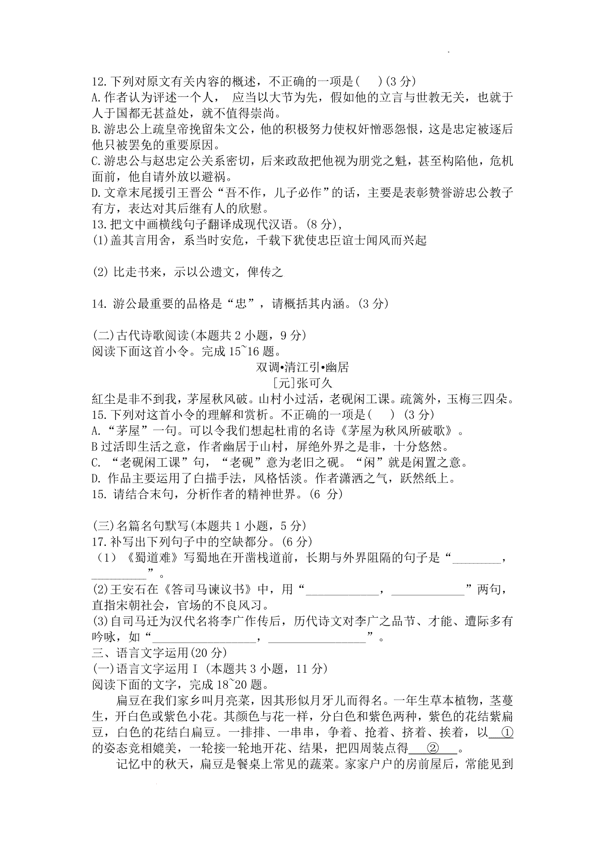 2023年湖南省高三联考语文