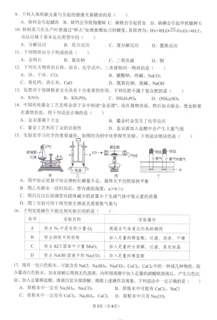 导读大试题为您提供2023年义乌中考化学模拟试卷及答案