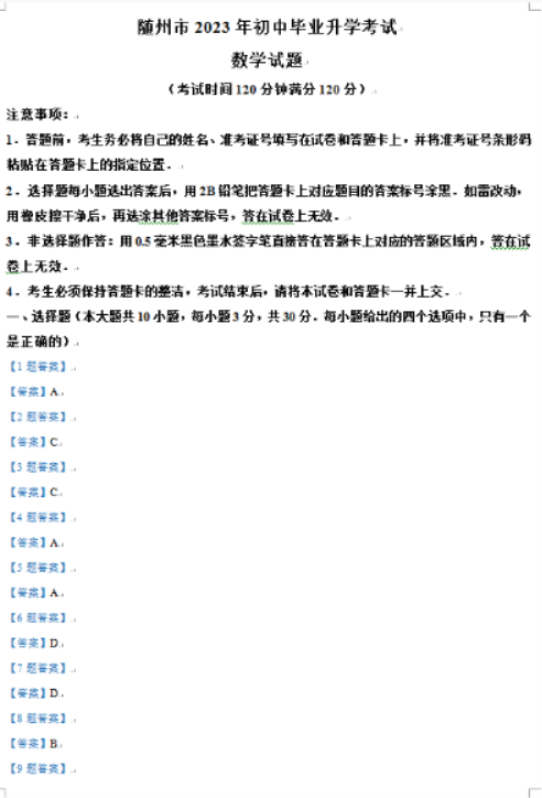 大试题为您提供2023孝感中考化学模拟试题及答案...