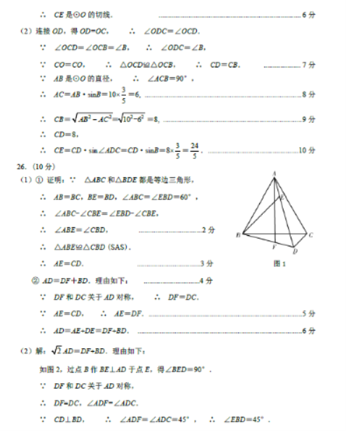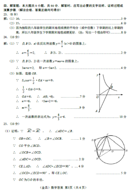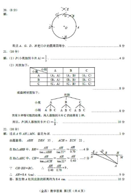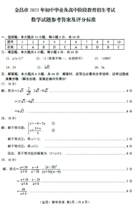 2023年金昌中考数学真题答案