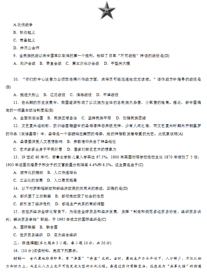 2024年广西中考历史模拟试题及答案
