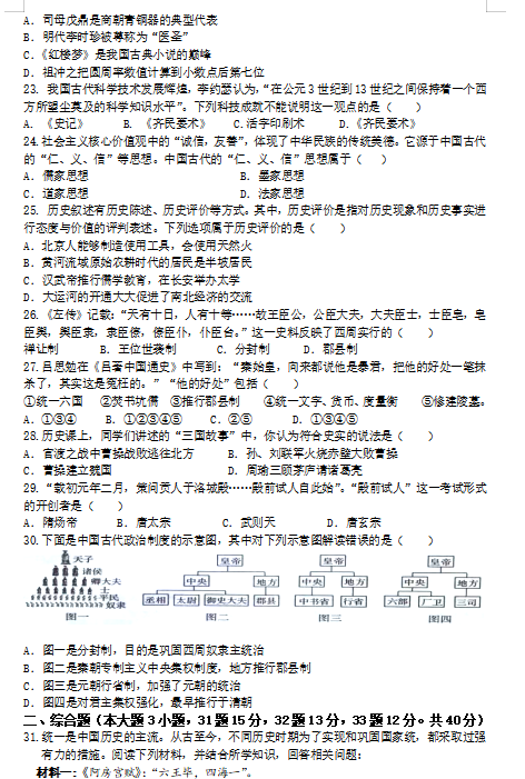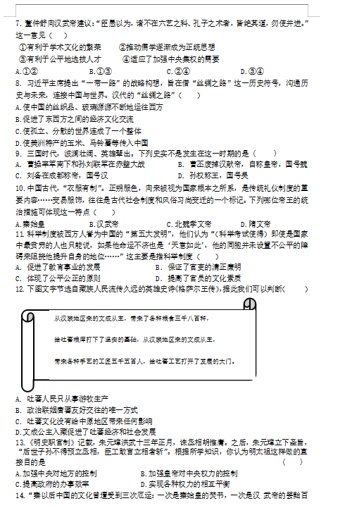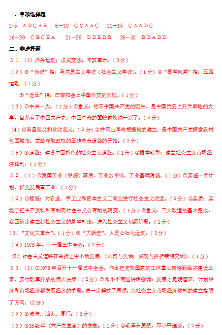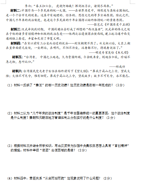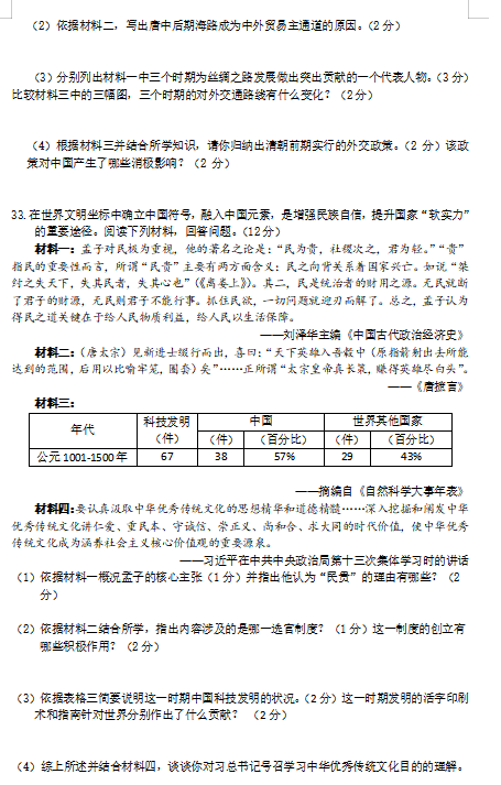 导读大试题为您提供2024中考历史冲刺试题及答案
