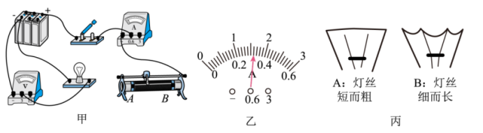 (6)之后,小华同学在家找到两个外观一样,额定电压均为220V的普通白炽灯,其铭牌已经模糊,看不出额定功率,但是可以直接通过观察图丙灯丝比较出两只灯泡的额定功率,请你判断,若将两只灯泡串联起来,接在220V的电路中,两灯的发光情况是____________(选填“A灯更亮”或“B灯更亮”或“两灯一样亮”)。
