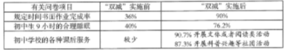 通过表格中的数字变化,请你简述实施该政策对学生成长的积极影响。(4分)