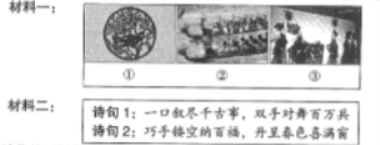 请你从“材料一”中选出属于“山西”的世界级非遗图片,并将“材料二”中的诗句分别与之进行匹配。(2分)