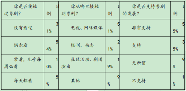 随后,小悦同学为更好地了解身边小区街坊对粤剧的接触情况,她和同学随机做了一个问卷调查,结果如下: