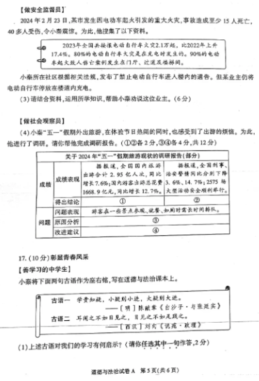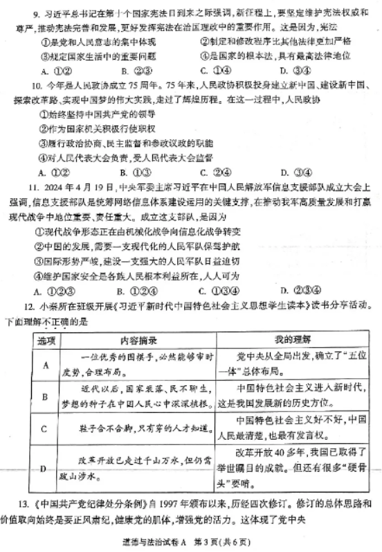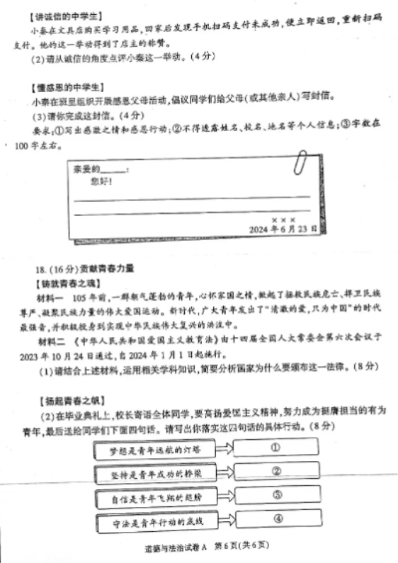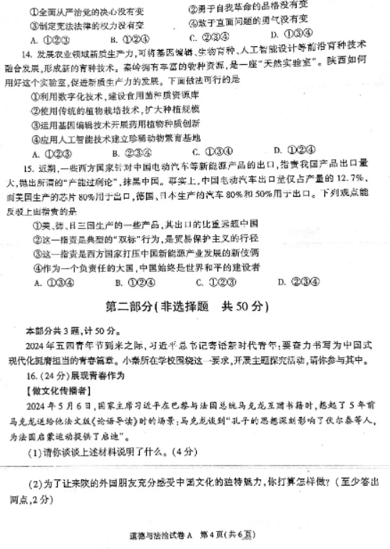 导读大试题为您提供2024年陕西中考道德与法治真题