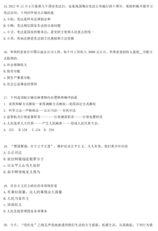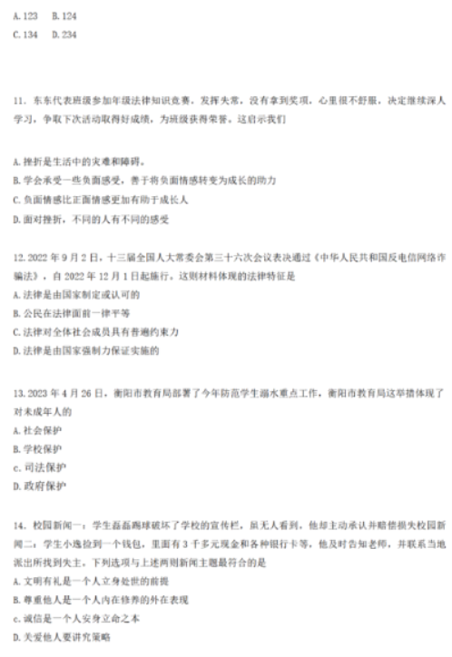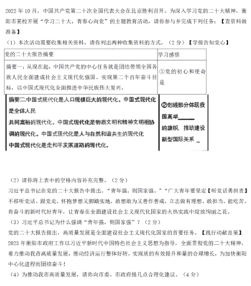 导读大试题为您提供2023年衡阳中考道德与法治真题