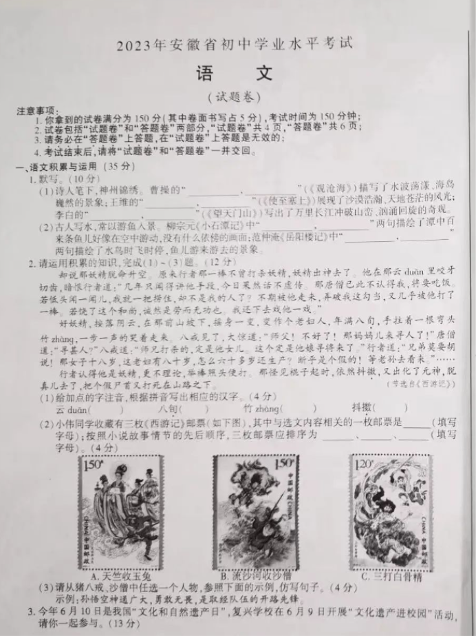 导读大试题为您提供2023淮南中考语文真题及答案