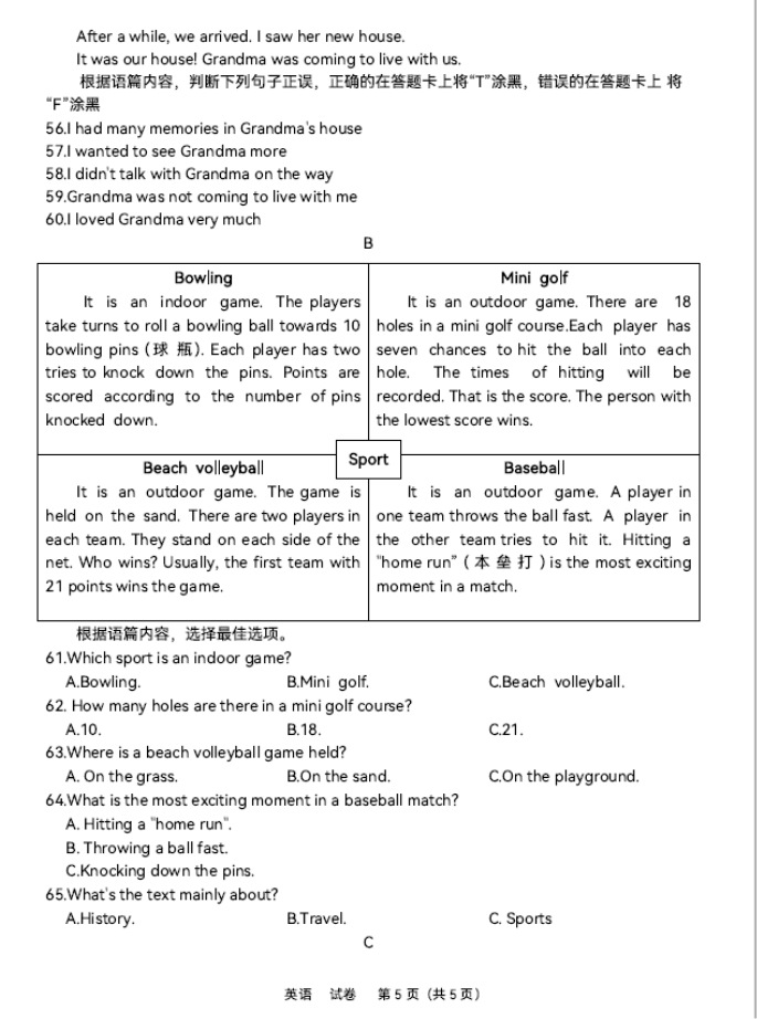 导读大试题为您提供2023年贺州中考英语真题及答案