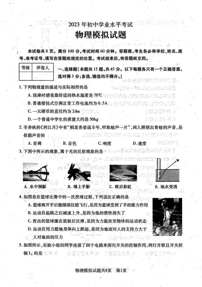 导读大试题为您提供2023年晋中中考物理模拟试题及答案