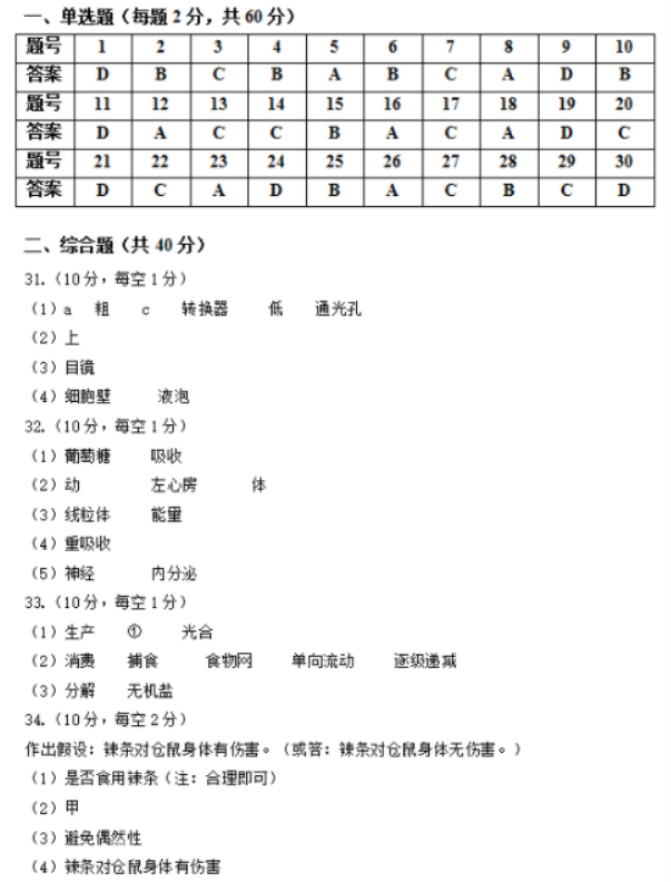 导读大试题为您提供2022年张家口中考生物真题及答案