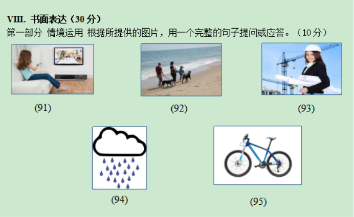 (4) 5-8分:短文内容不太符合所给提示。语句不够通顺,语法错误较多,书写一般,字数在60词以下。