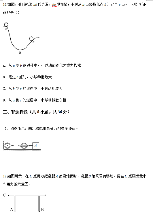 深圳中考力学部分