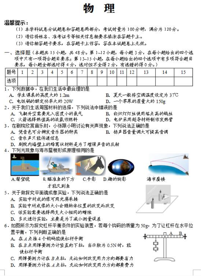 导读大试题为您提供2023山东胜利第一中学中考物理模拟试题及答案