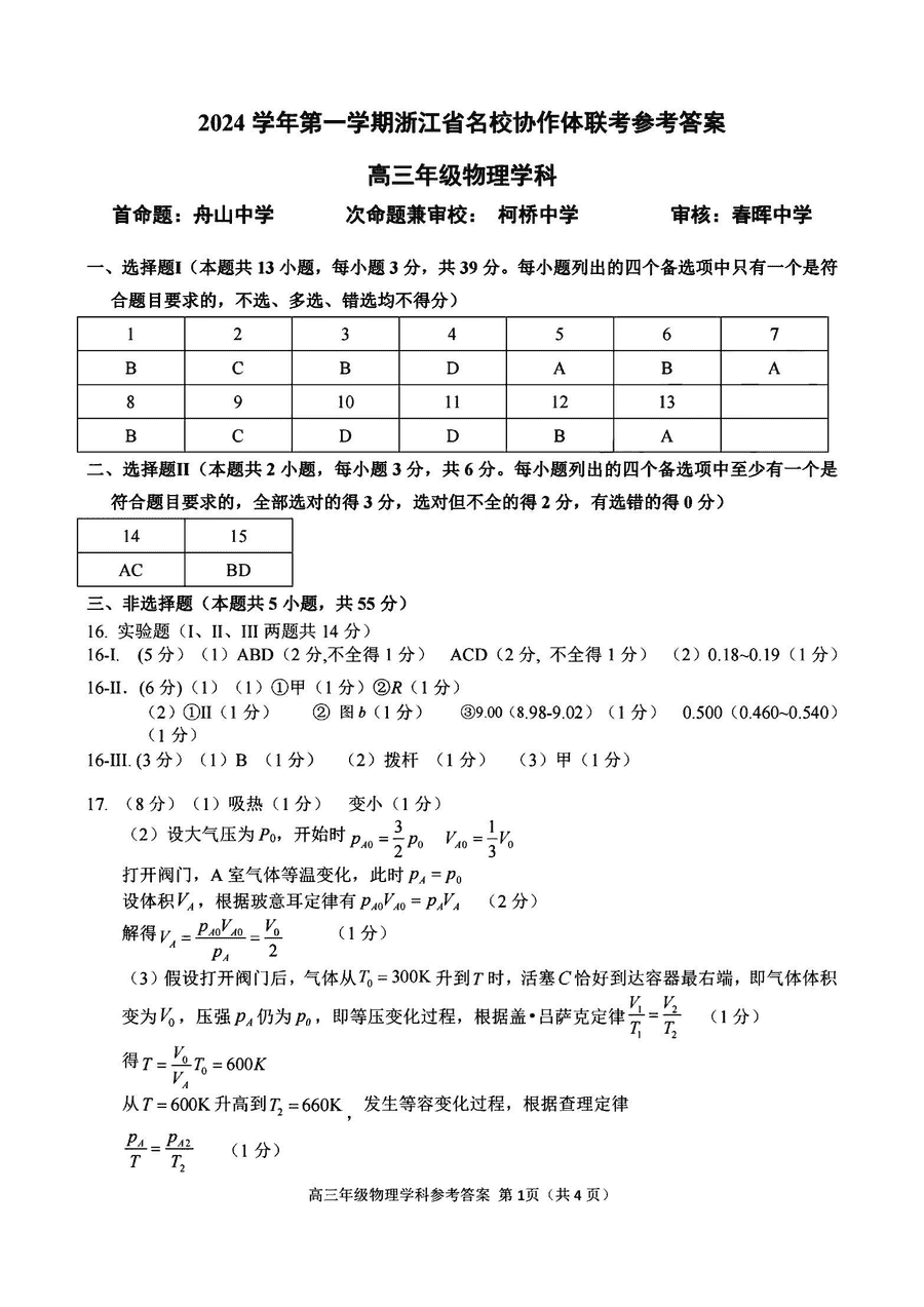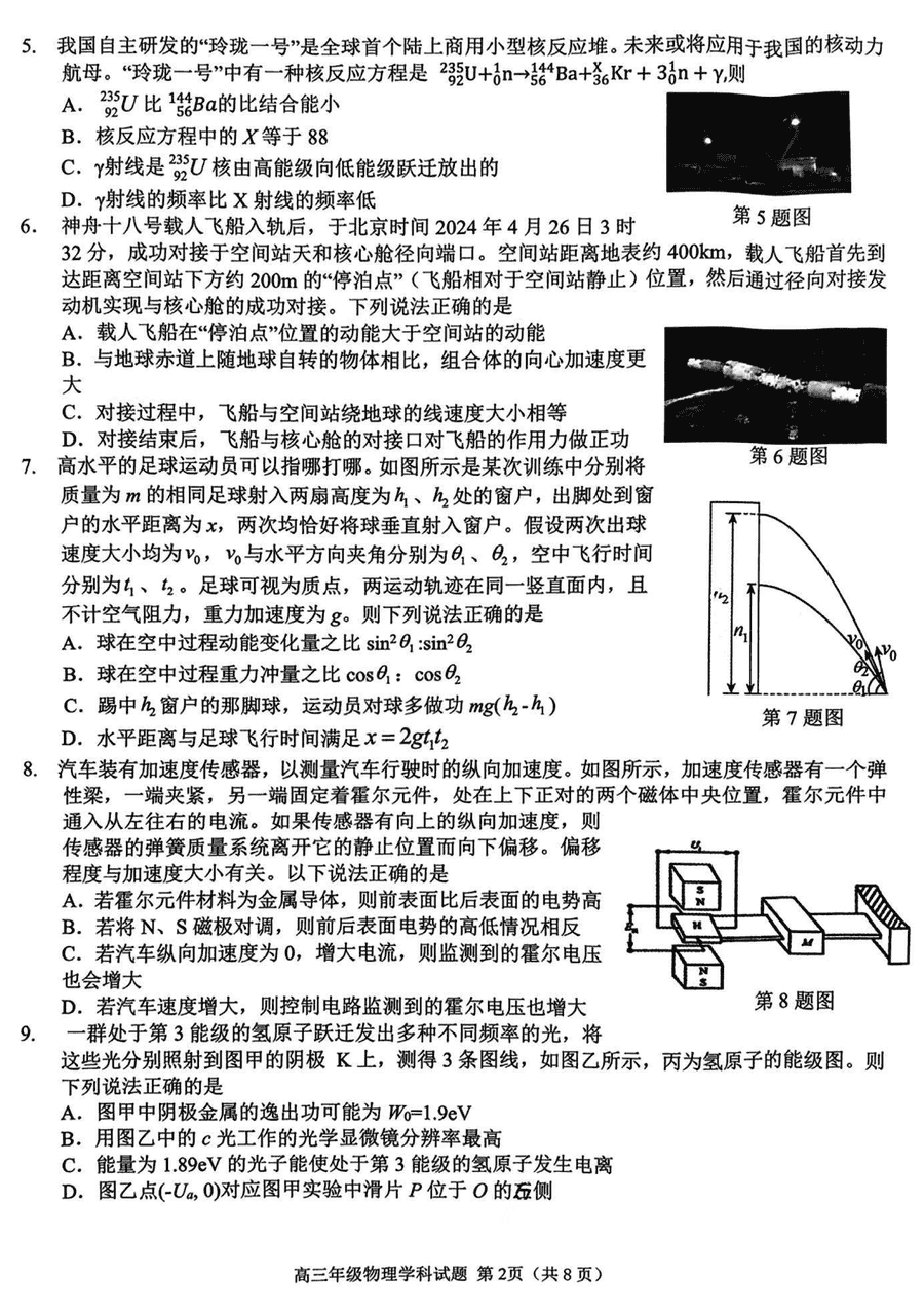 浙江北斗星盟2025届高三下学期三模物理试题质量较高,题型多样,将作为考察考生对相应考点的掌握程度,考后将及时整理试题及...