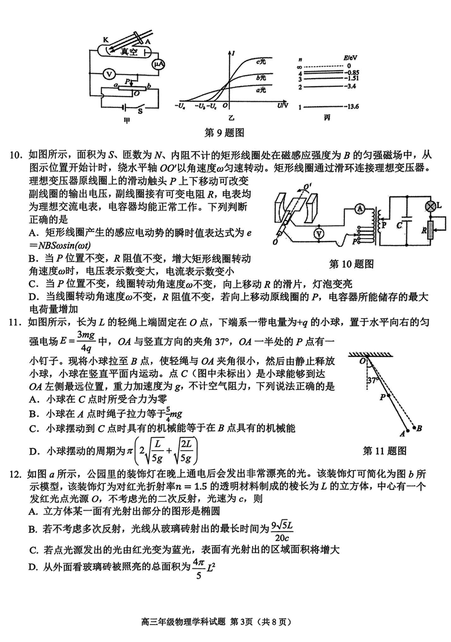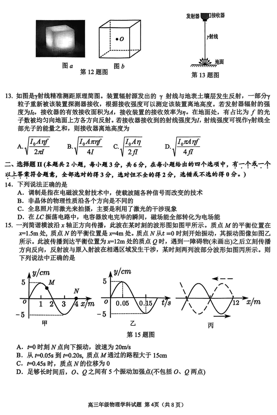 导读2025届浙江省G12名校协作体高三返校考物理试题质量较高,题型多样,将作为考察考生对相应考点的掌握程度,考后将及时整理试题及答案解析相关信息,以供考生学习交流!物理试题及答案解析