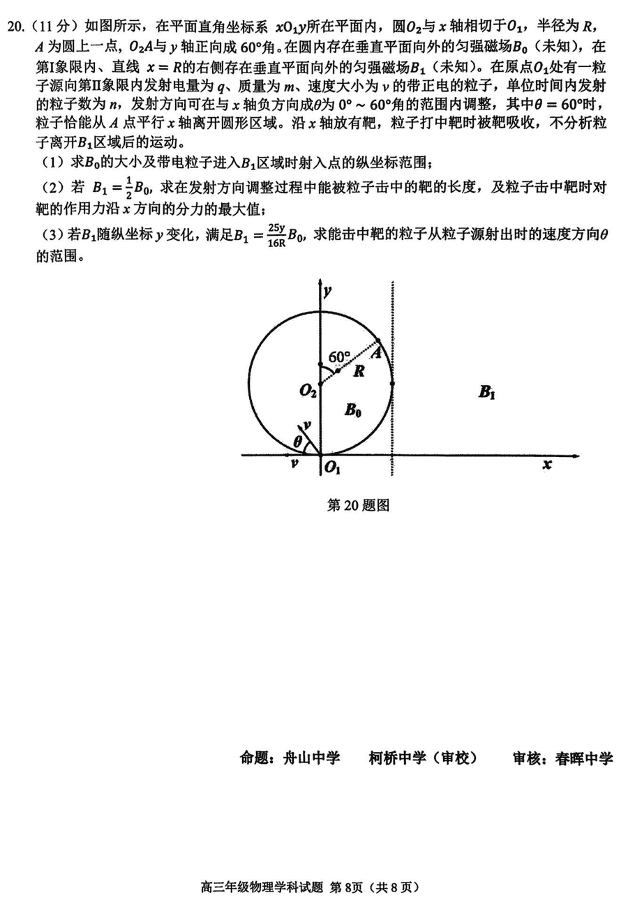 2025届浙江省G12名校协作体高三返校考物理试题质量较高,题型多样,将作为考察考生对相应考点的掌握程度,考后将及时整理试题及答案解析相关信息,以供考生学习交流!