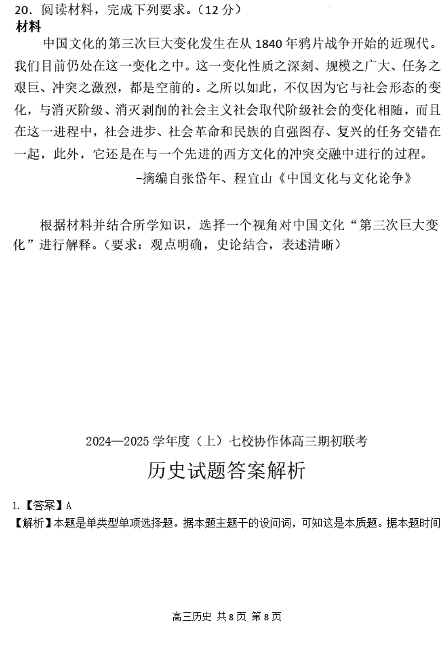 辽宁七校协作体2024-2025学年高三期初联考历史试题质量较高,题型多样,将作为考察考生对相应考点的掌握程度,考后将及时整理试题及答案解析相关信息,以供考生学习交流!