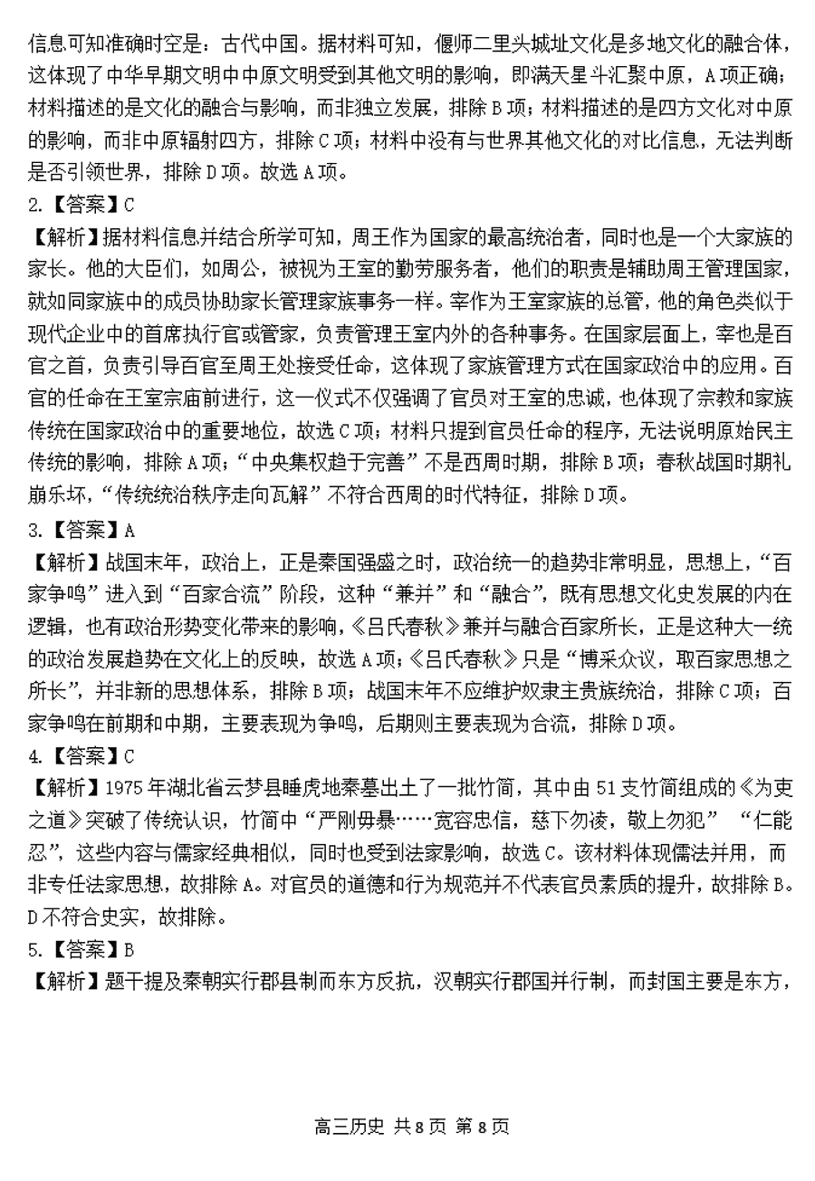 历史试题及答案解析