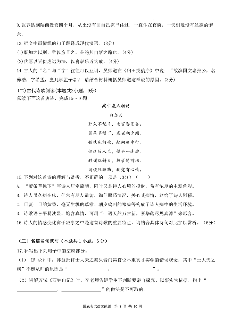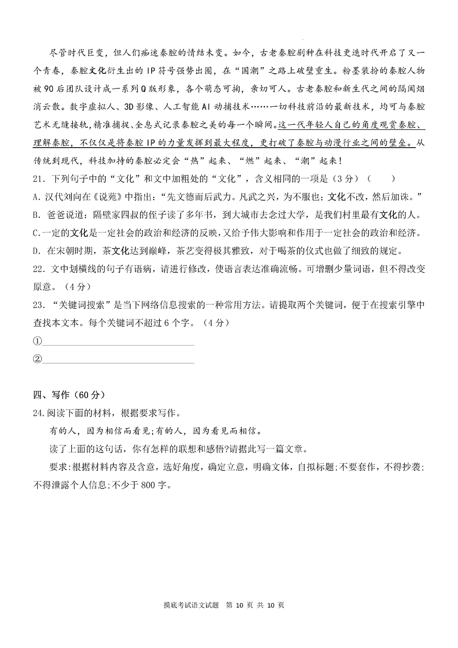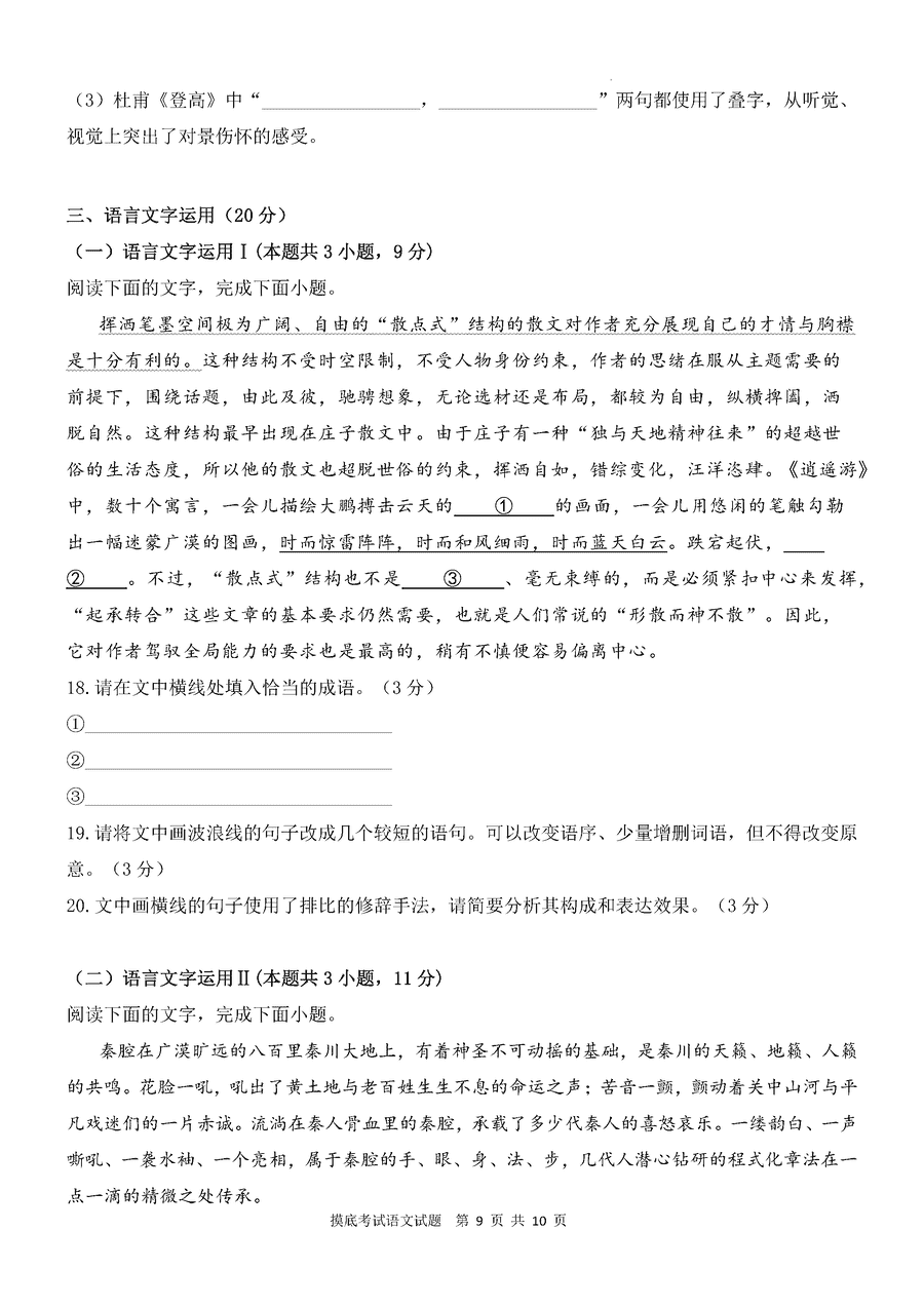 咸阳市2025年高考模拟检测(二)语文试题质量较高,题型多样,将作为考察考生对相应考点的掌握程度,考后将及时整理试题及答...
