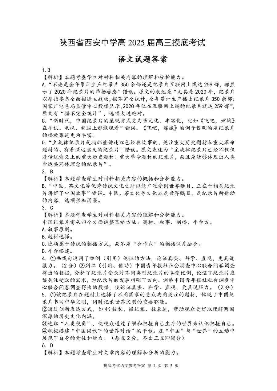陕西西安中学2024-2025学年高三上学期开学考语文试题质量较高,题型多样,将作为考察考生对相应考点的掌握程度,考后将及时整理试题及答案解析相关信息,以供考生学习交流!
