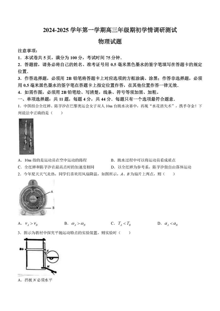 导读江苏省扬州市2024-2025学年高三上学期开学考物理试题质量较高,题型多样,将作为考察考生对相应考点的掌握程度,考后将及时整理试题及答案解析相关信息,以供考生学习交流!物理试题及答案解析