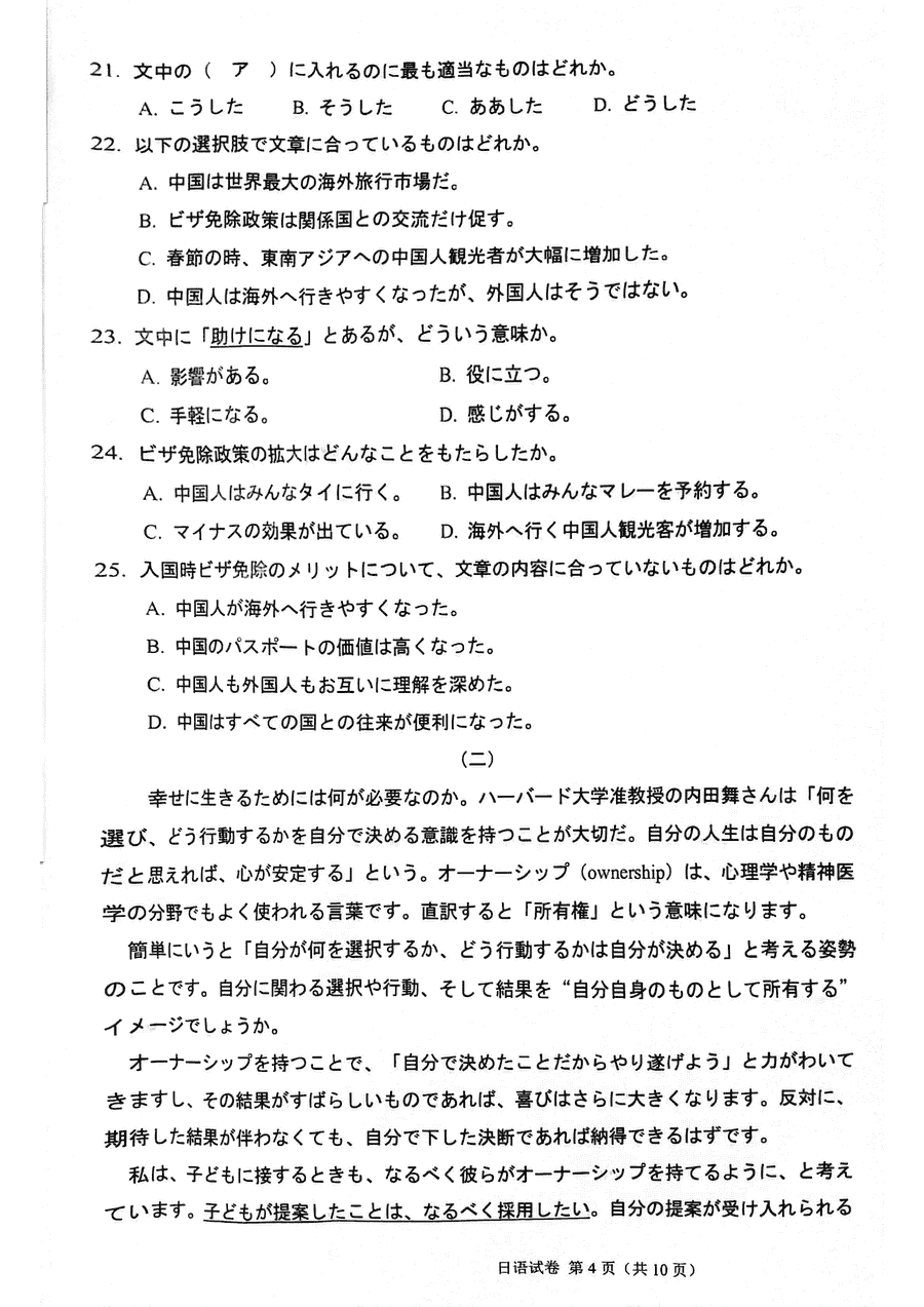 导读2025陕西省安康市高三上学期学情摸底考日语试题质量较高,题型多样,将作为考察考生对相应考点的掌握程度,考后将及时整理试题及答案解析相关信息,以供考生学习交流!日语试题及答案解析