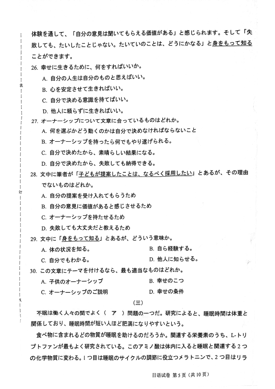 2025陕西省安康市高三上学期学情摸底考日语试题质量较高,题型多样,将作为考察考生对相应考点的掌握程度,考后将及时整理试题及答案解析相关信息,以供考生学习交流!