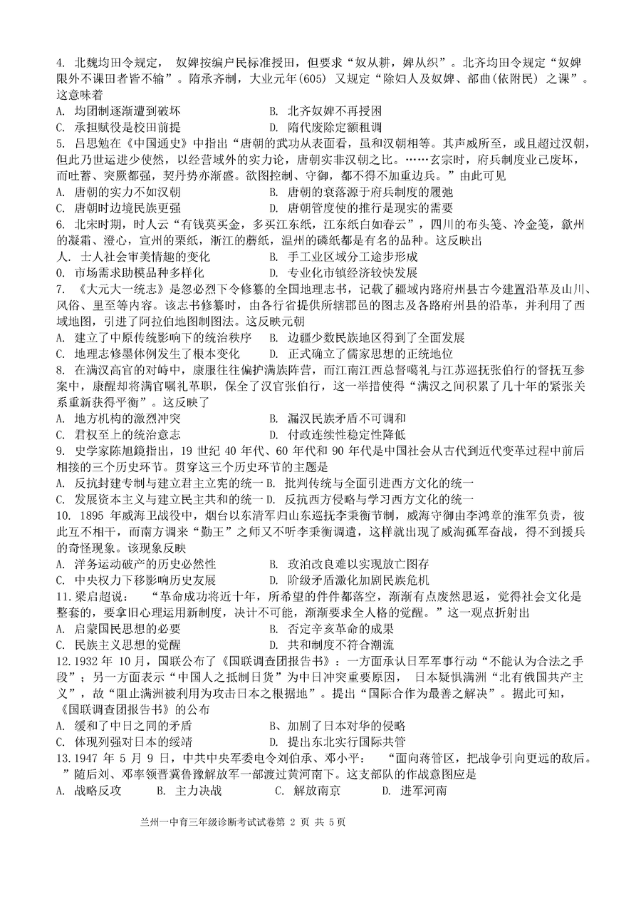 导读兰州一中2024-2025学年高三上学期开学考历史试题质量较高,题型多样,将作为考察考生对相应考点的掌握程度,考后将及时整理试题及答案解析相关信息,以供考生学习交流!历史试题及答案解析