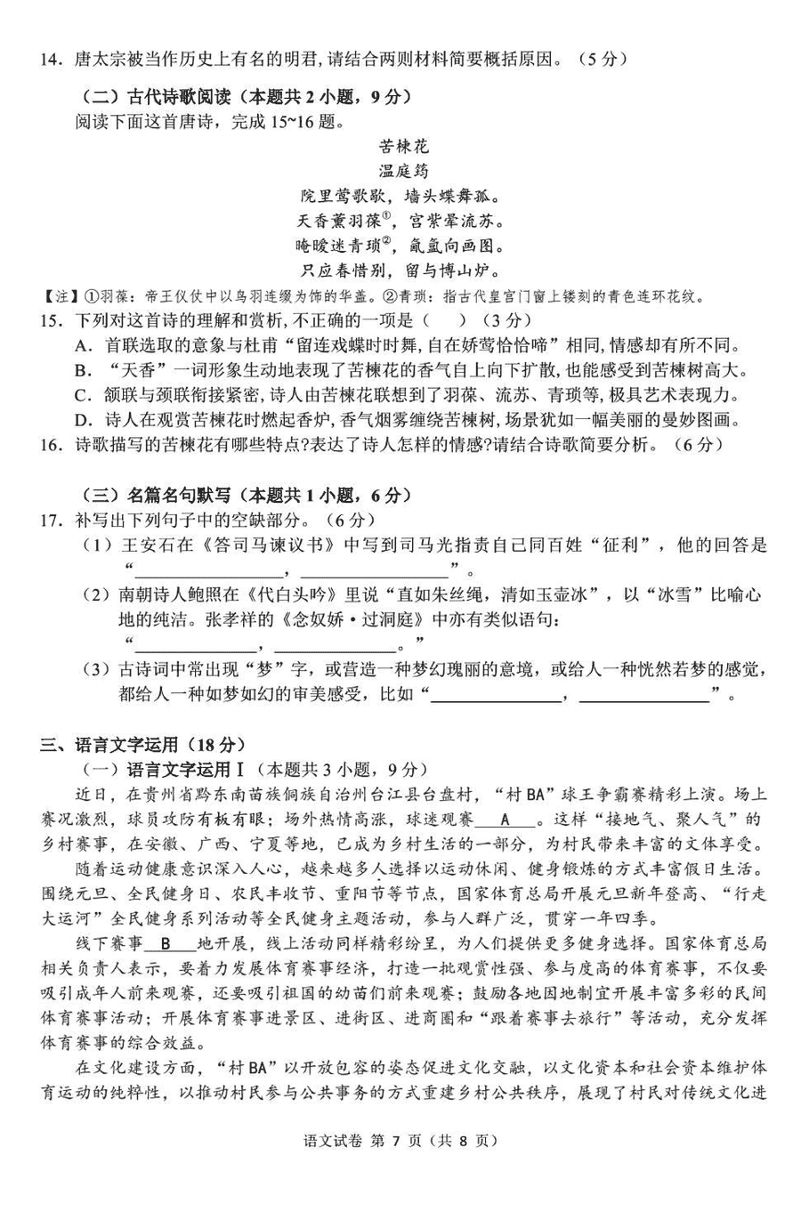 2024 年安徽“江南十校”大试题网第一次综合素质检测语文试题质量较高,题型多样,将作为考察考生对相应考点的掌握程度,考后将及时整理试题及答案解析相关信息,以供考生学习交流!