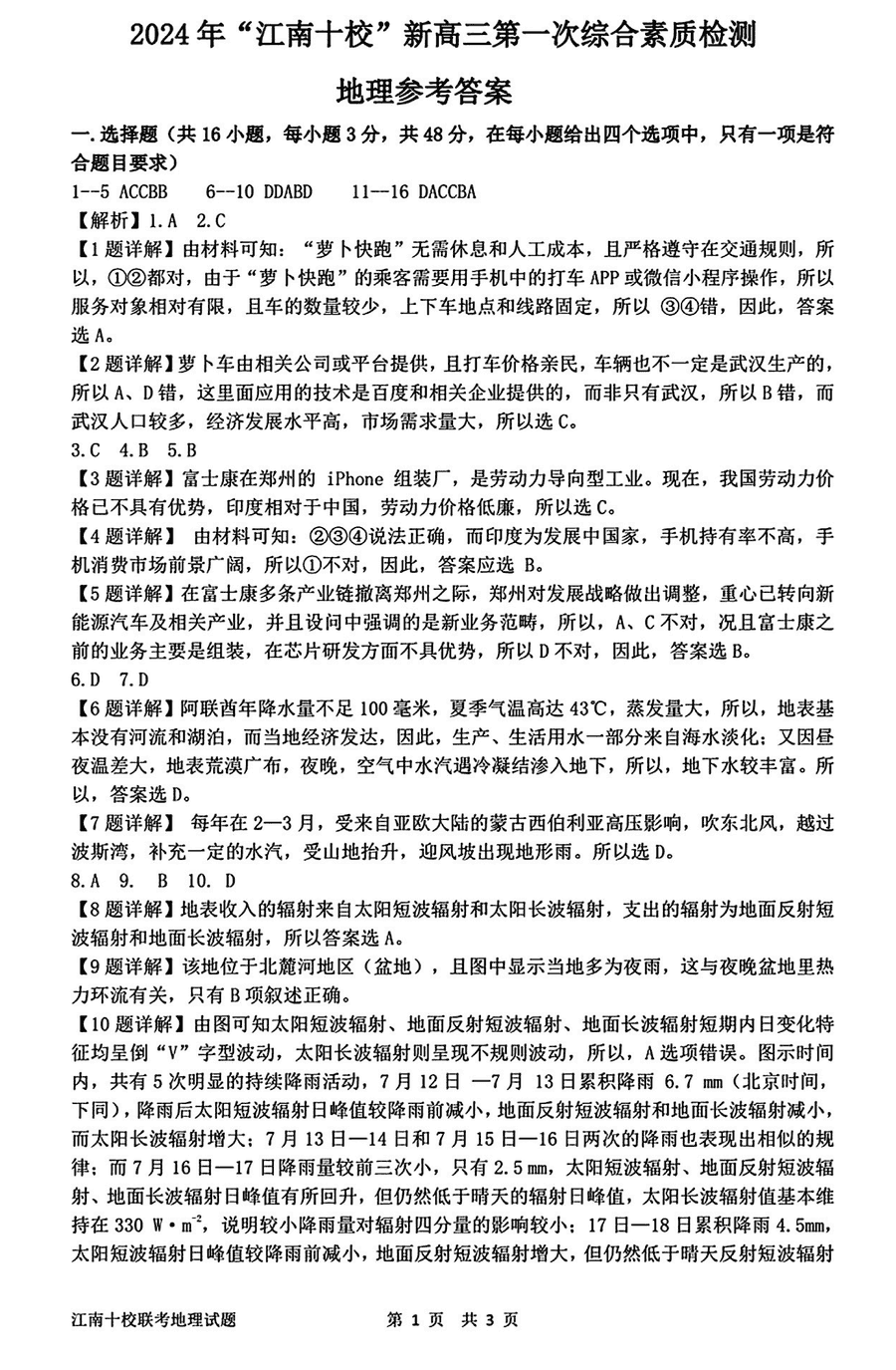 2024 年安徽“江南十校”大试题网第一次综合素质检测地理试题质量较高,题型多样,将作为考察考生对相应考点的掌握程度,考后将及时整理试题及答案解析相关信息,以供考生学习交流!