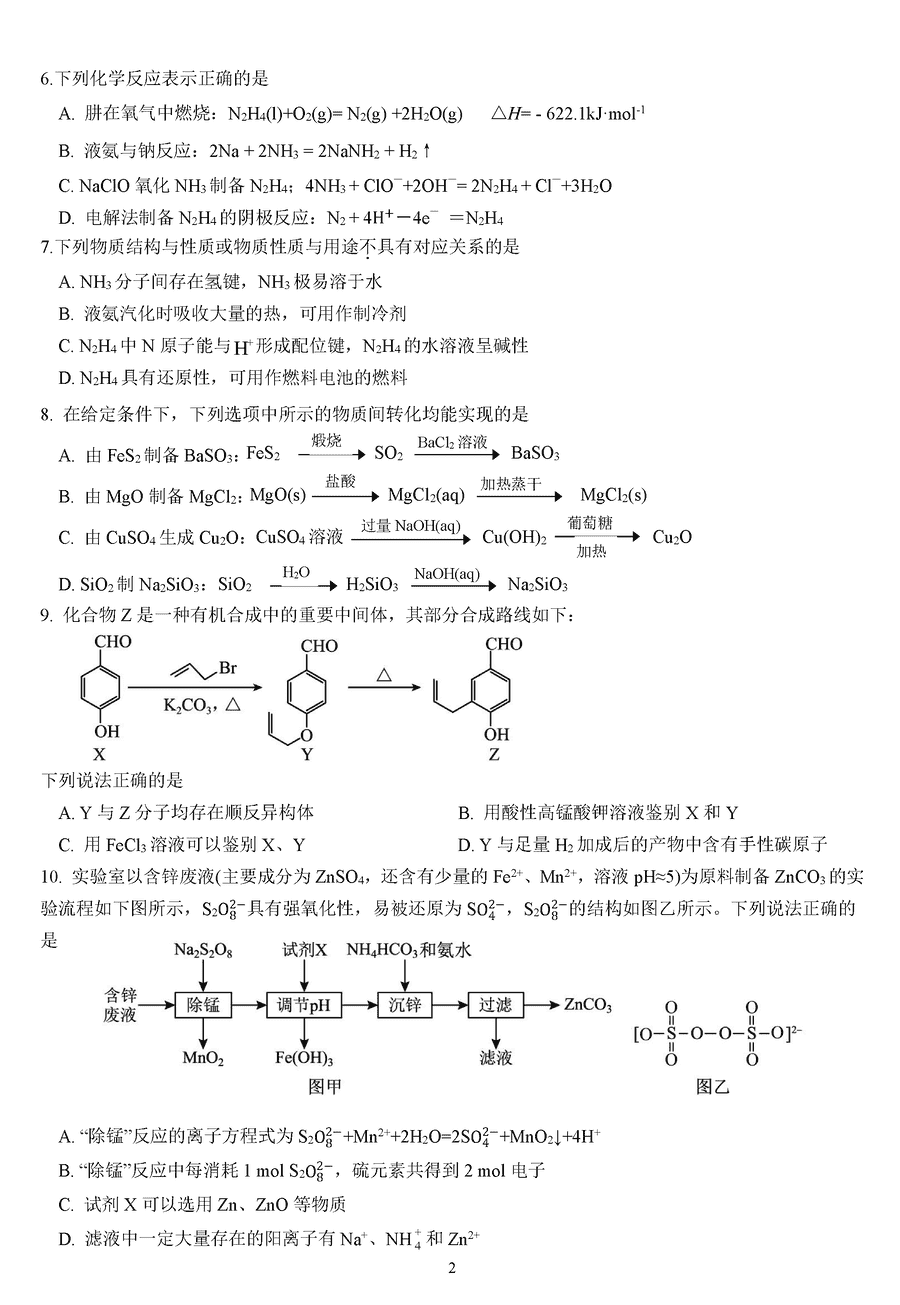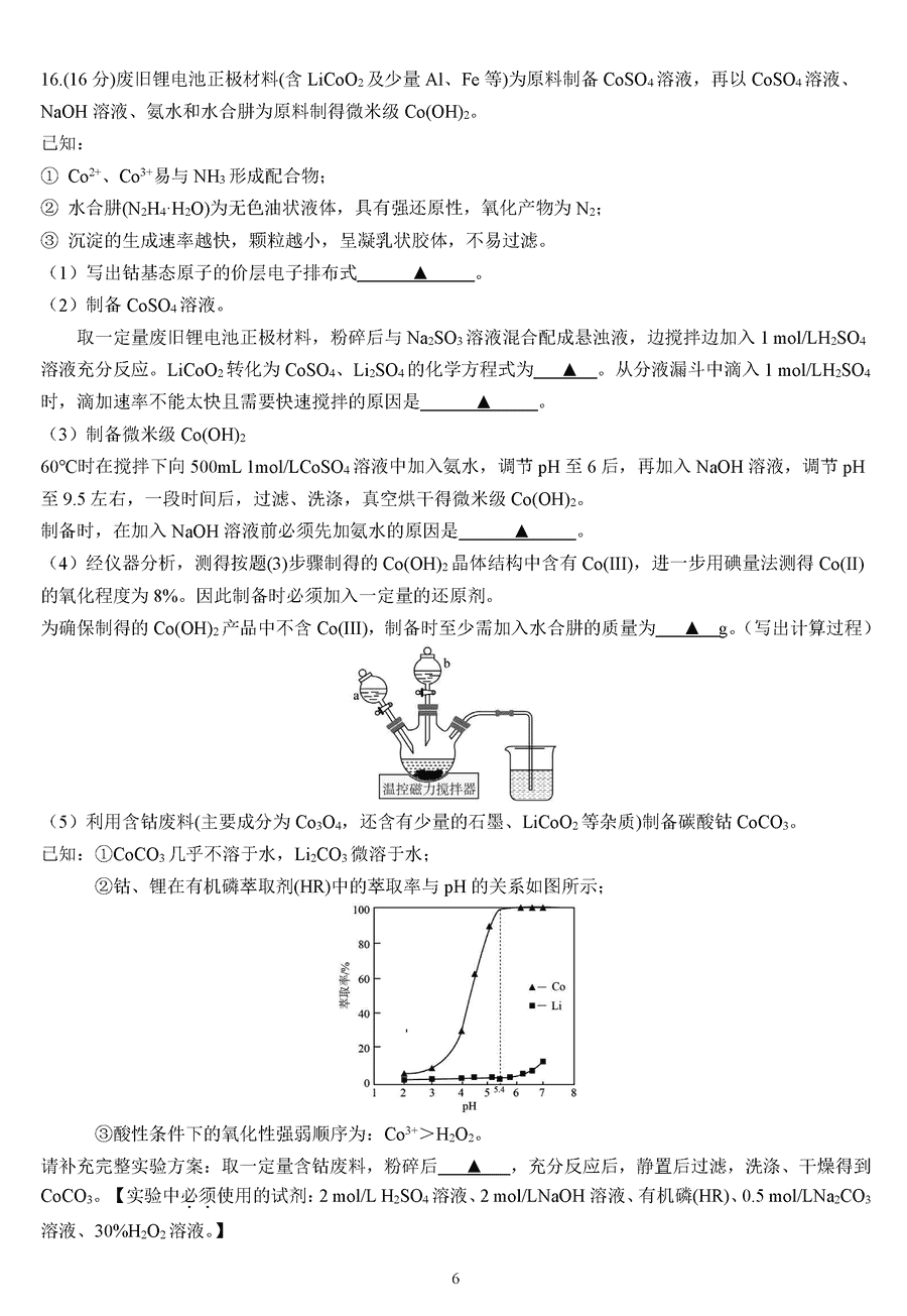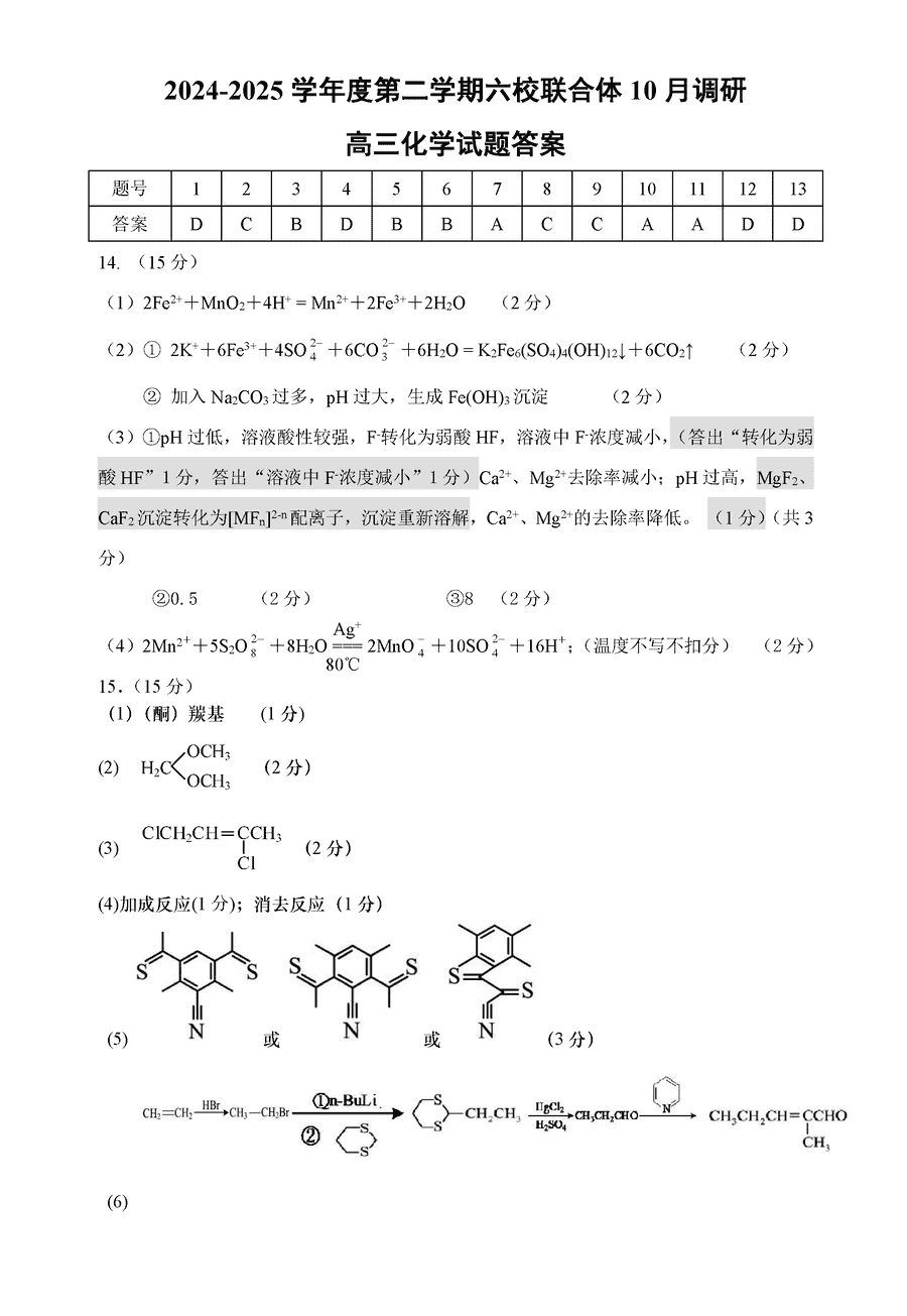 导读南京六校联合体2024-2025学年高三上学期10月期中调研化学试题质量较高,题型多样,将作为考察考生对相应考点的掌握程度,考后将及时整理试题及答案解析相关信息,以供考生学习交流!化学试题及答案解析