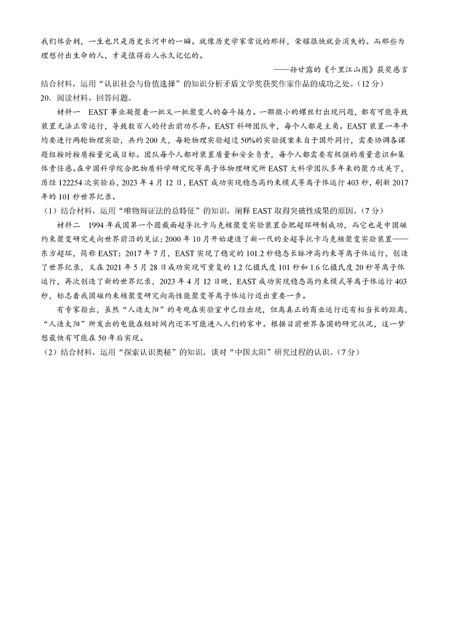 2025年湖北省新八校协作体高三5月联考政治试卷及参考答案