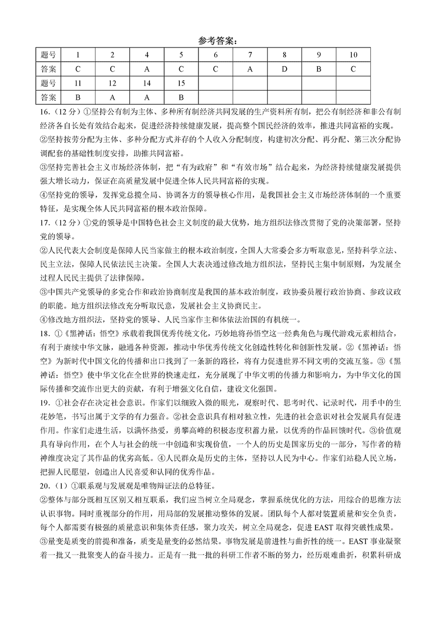导读天津市实验中学2025届高三上学期第二次质量调查政治试题质量较高,题型多样,将作为考察考生对相应考点的掌握程度,考后将及时整理试题及答案解析相关信息,以供考生学习交流!政治试题及答案解析