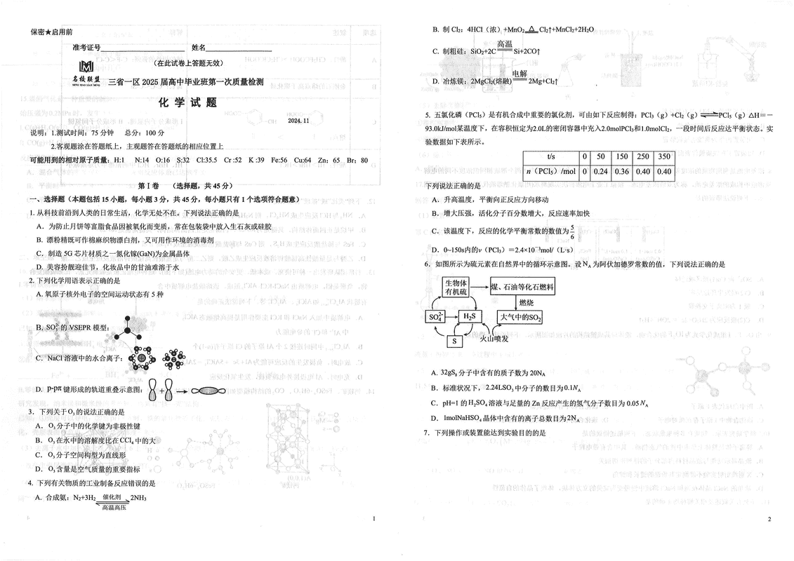 2025届东北三省一区名校联盟高三11月第一次质检化学试题质量较高,题型多样,将作为考察考生对相应考点的掌握程度,考后将及时整理试题及答案解析相关信息,以供考生学习交流!