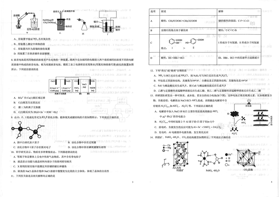 导读2025届东北三省一区名校联盟高三11月第一次质检化学试题质量较高,题型多样,将作为考察考生对相应考点的掌握程度,考后将及时整理试题及答案解析相关信息,以供考生学习交流!化学试题及答案解析