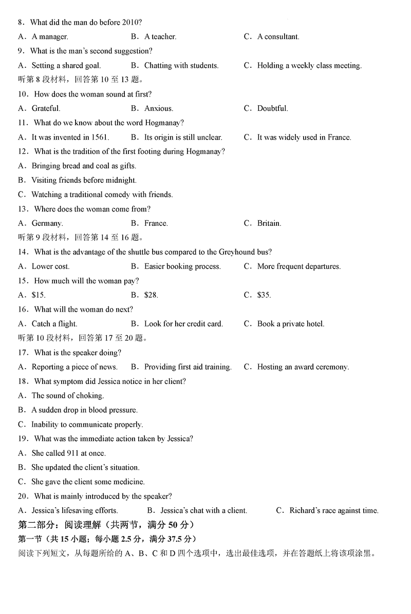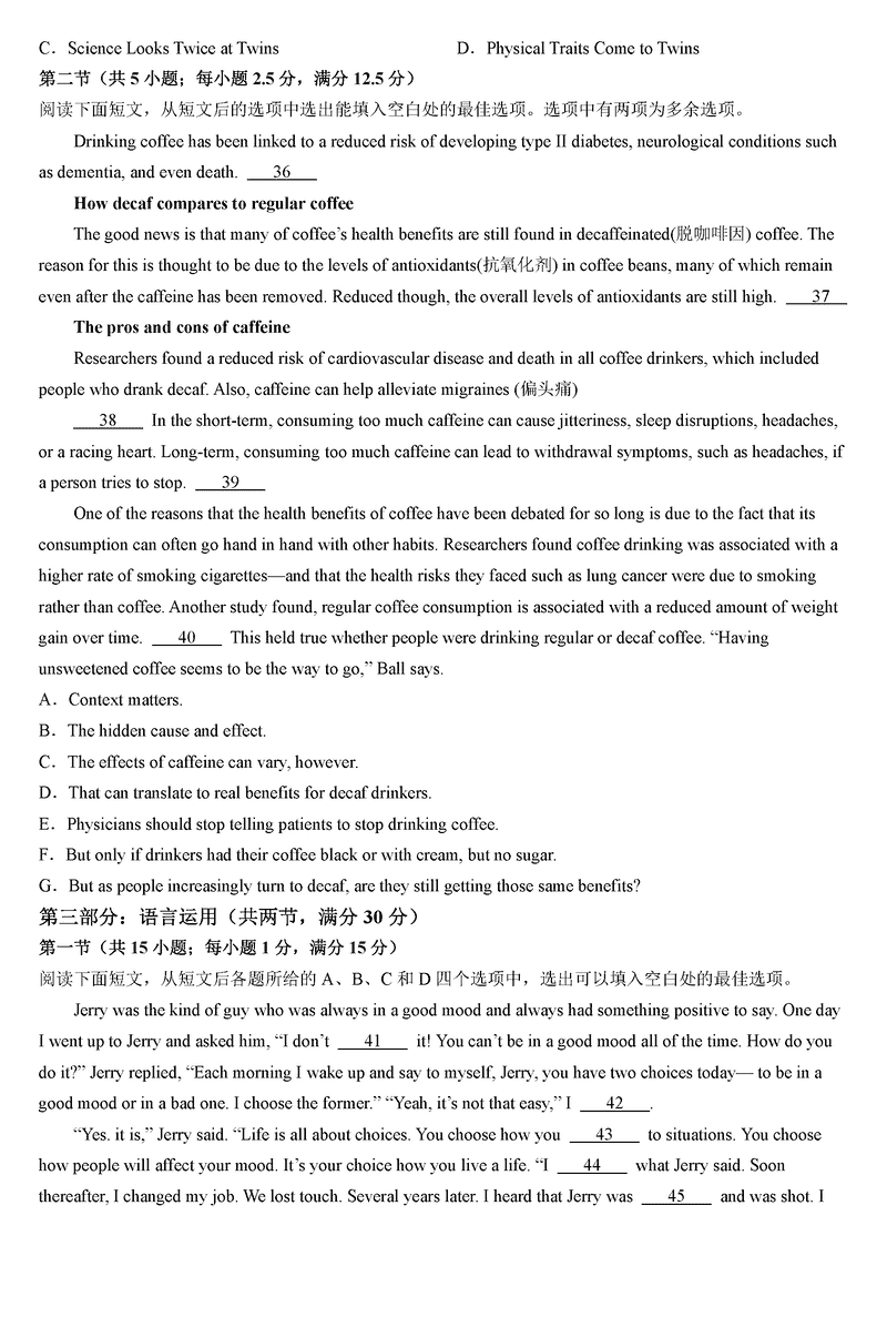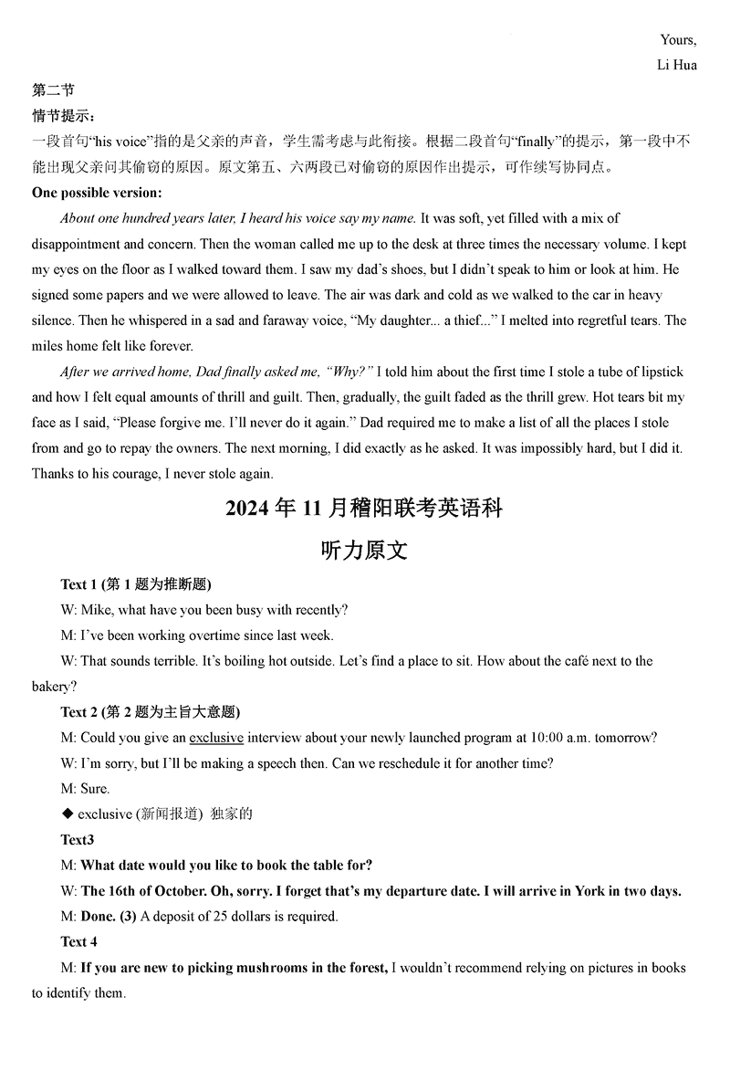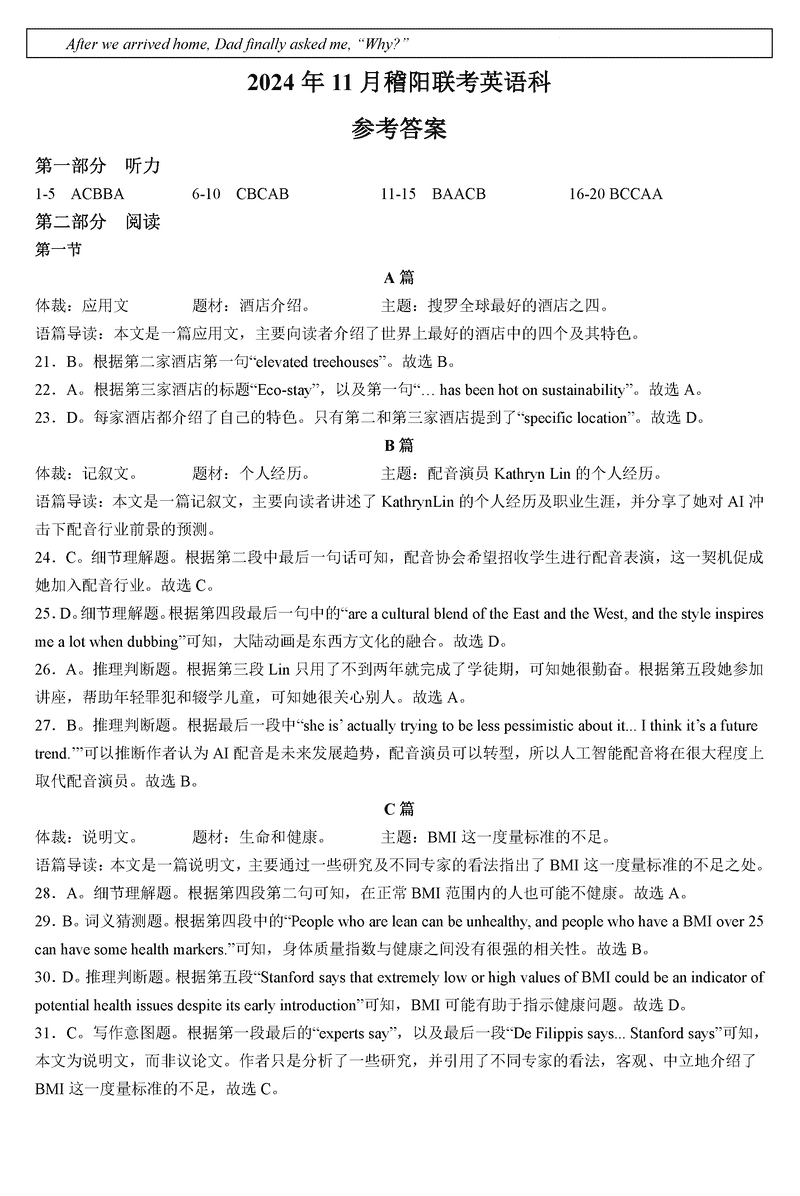 浙江稽阳联谊学校2024年11月高三上学期联考英语试题质量较高,题型多样,将作为考察考生对相应考点的掌握程度,考后将及时整理试题及答案解析相关信息,以供考生学习交流!