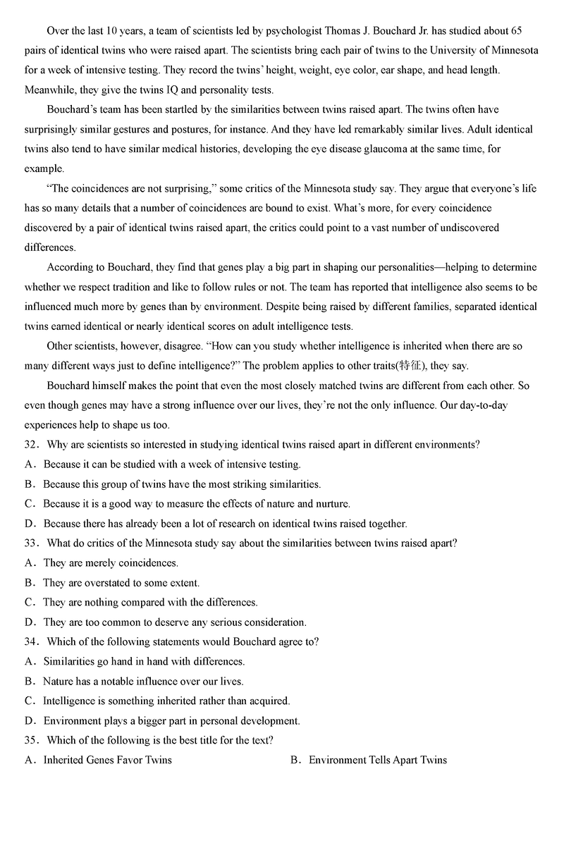导读浙江稽阳联谊学校2024年11月高三上学期联考英语试题质量较高,题型多样,将作为考察考生对相应考点的掌握程度,考后将及时整理试题及答案解析相关信息,以供考生学习交流!英语试题及答案解析