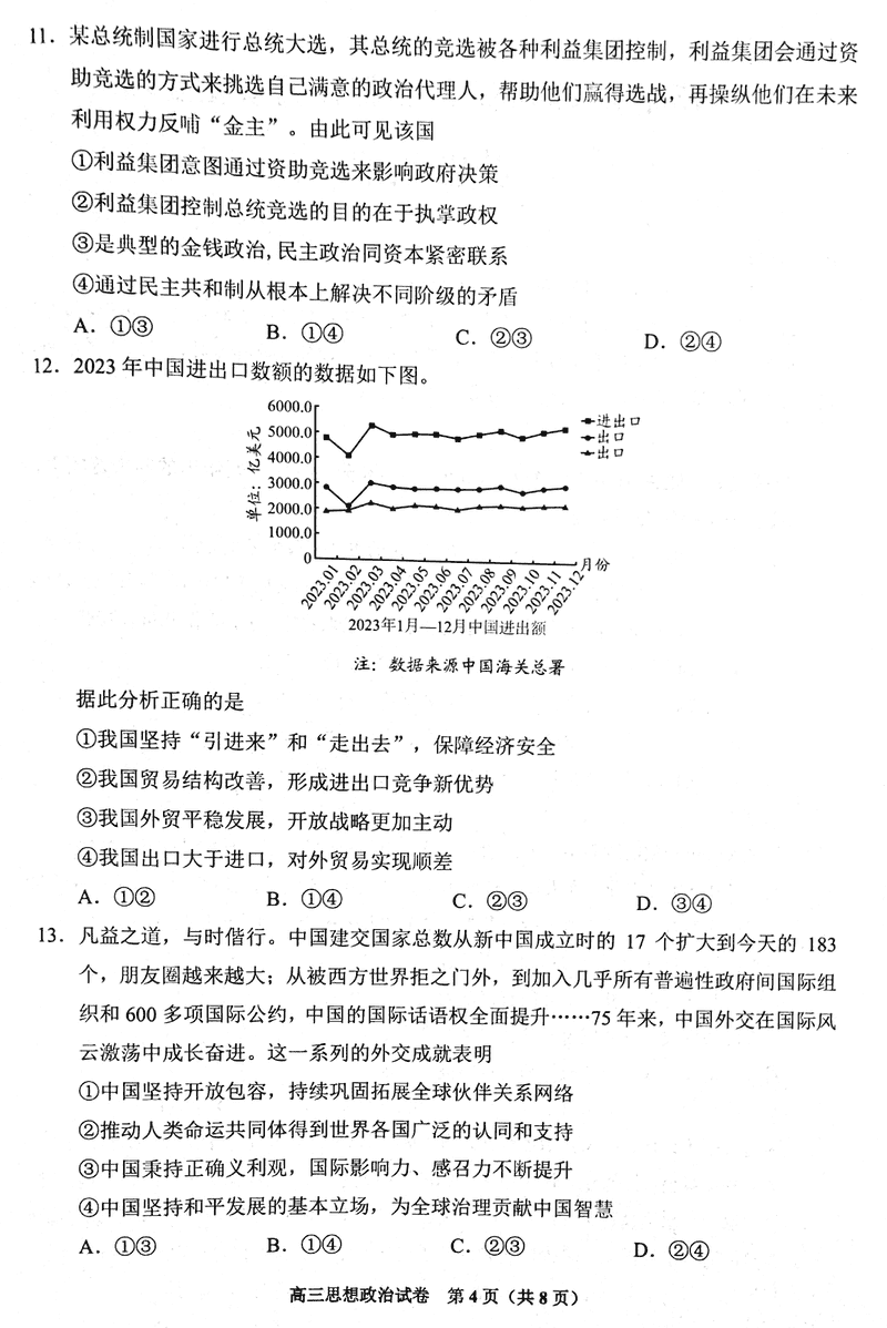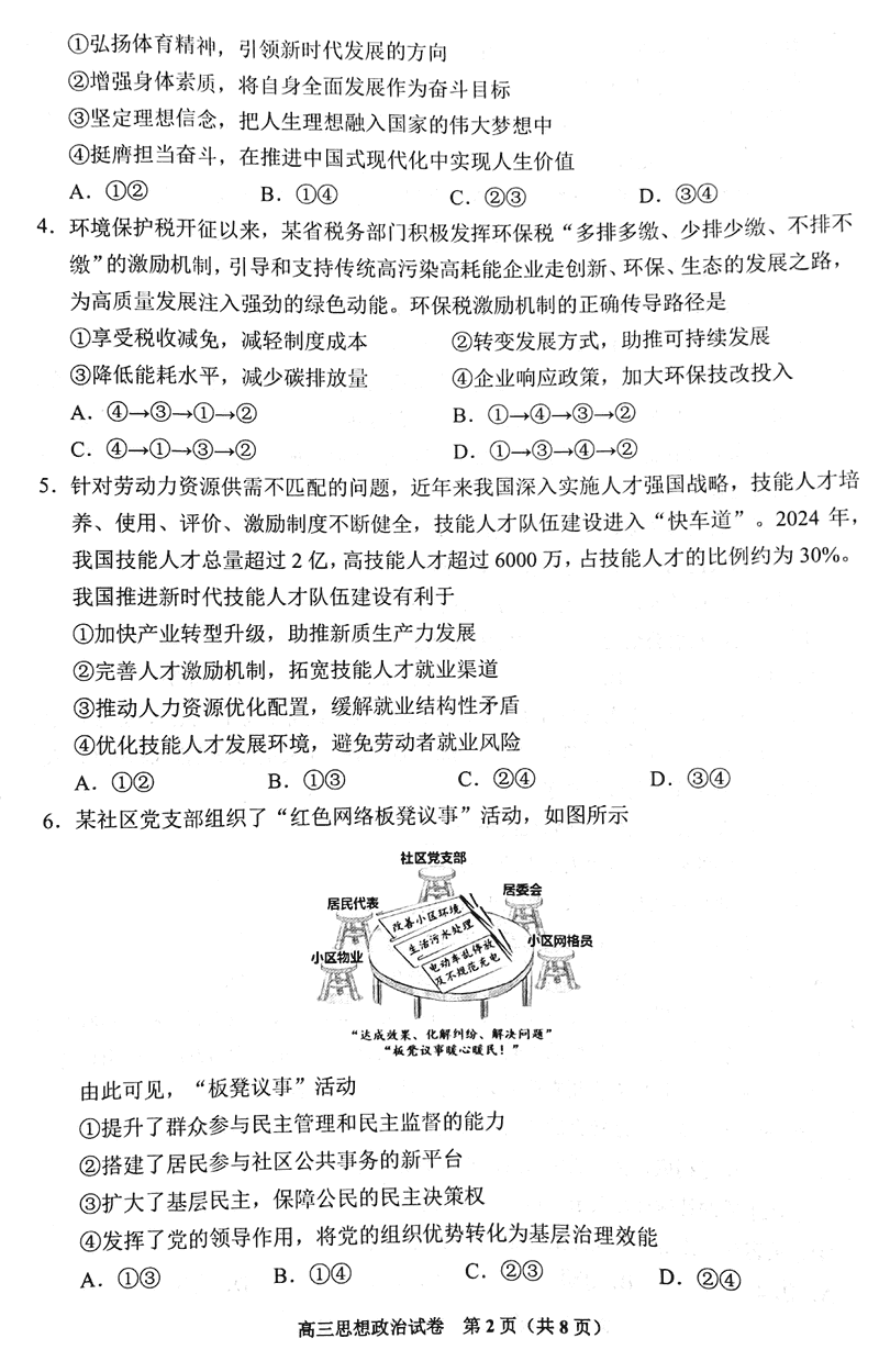 导读贵阳市2025届高三上学期11月质量监测政治试题质量较高,题型多样,将作为考察考生对相应考点的掌握程度,考后将及时整理试题及答案解析相关信息,以供考生学习交流!政治试题及答案解析