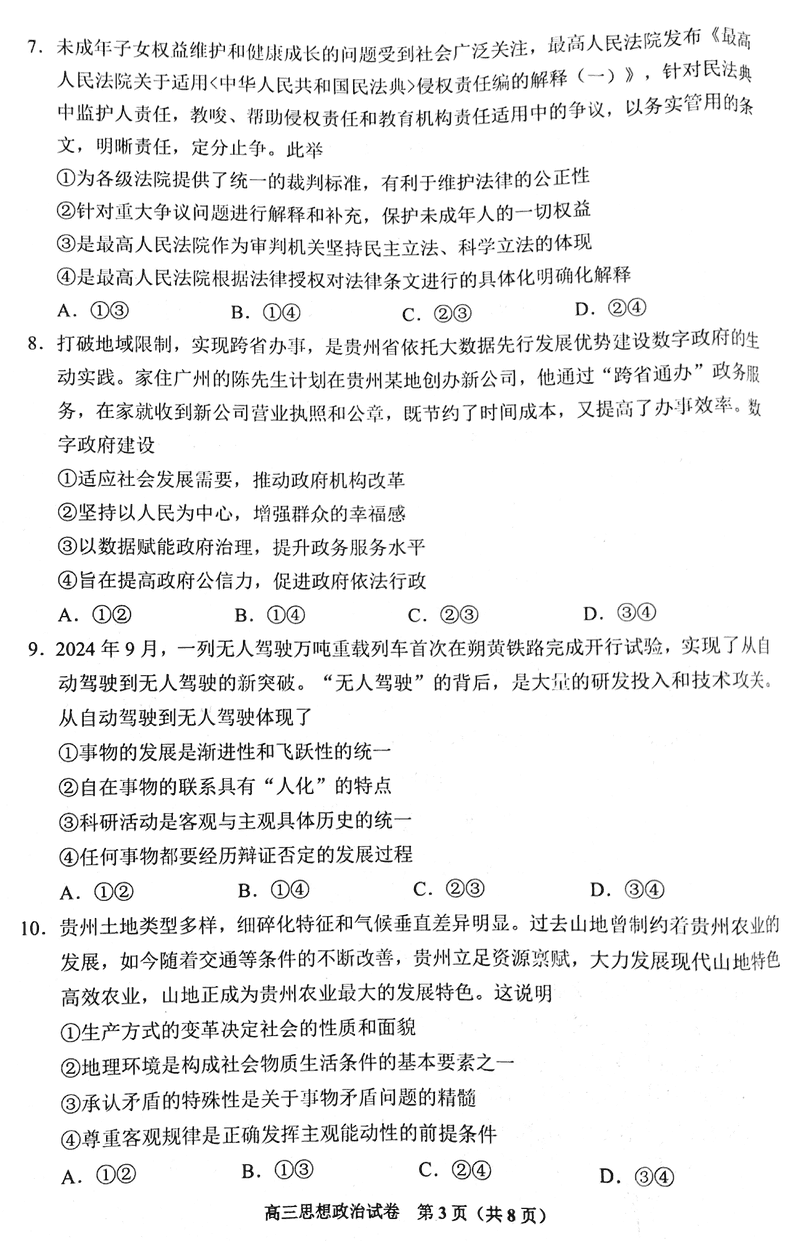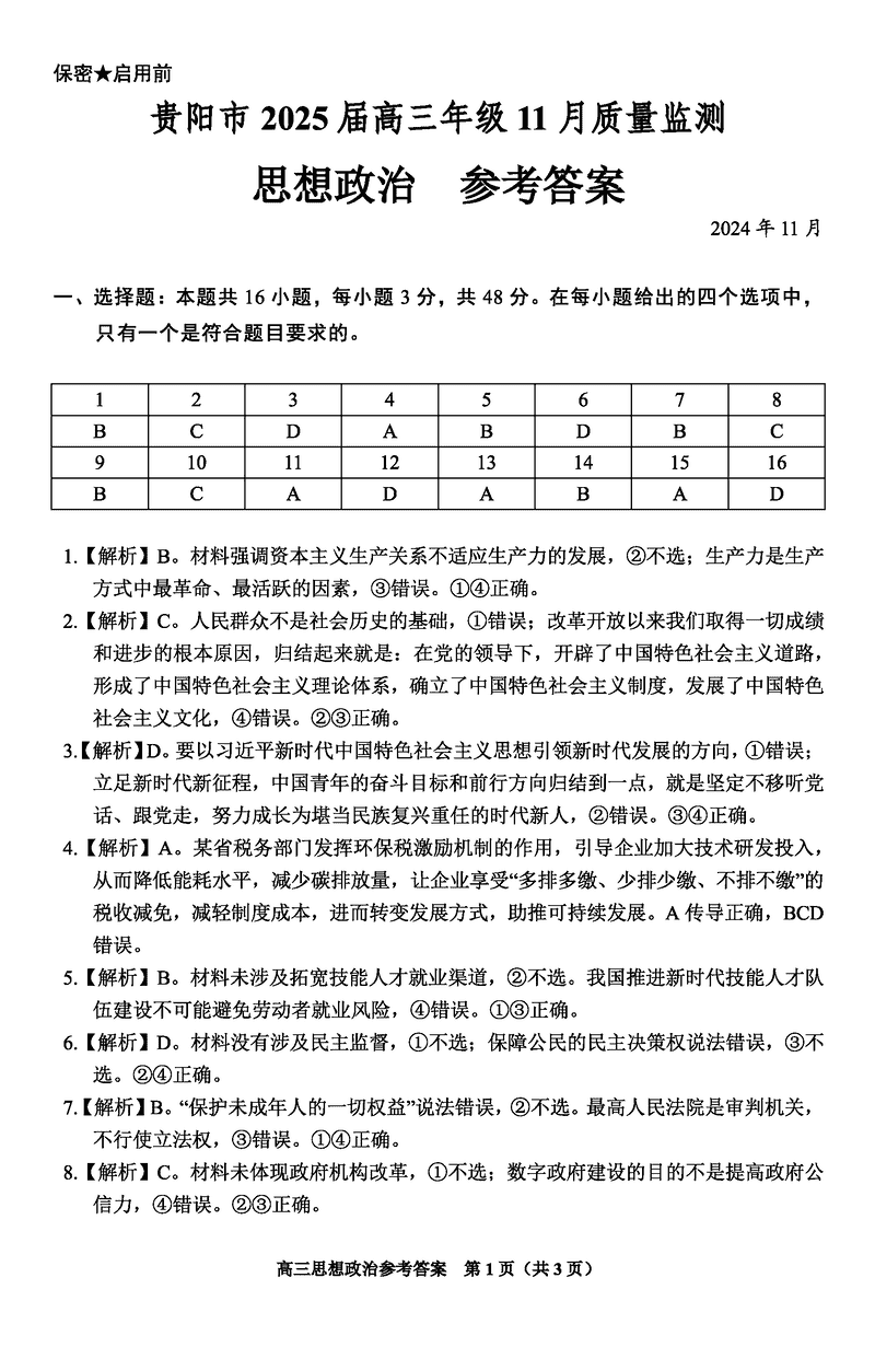 贵阳市2025届高三上学期11月质量监测政治试题质量较高,题型多样,将作为考察考生对相应考点的掌握程度,考后将及时整理试题及答案解析相关信息,以供考生学习交流!