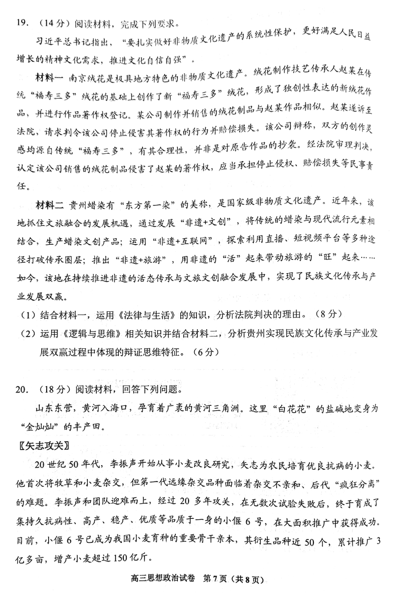 贵阳市七校2025届高三下学期联考(三)政治试题质量较高,题型多样,将作为考察考生对相应考点的掌握程度,考后将及时整理试...