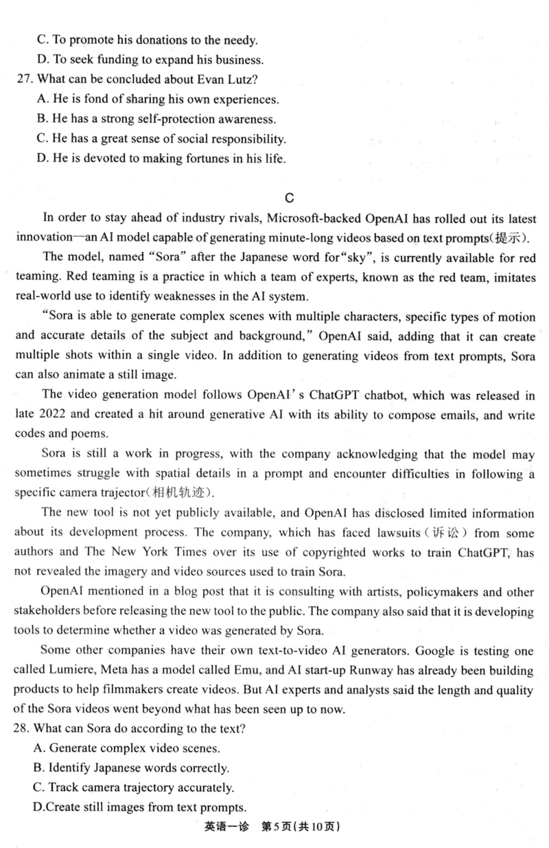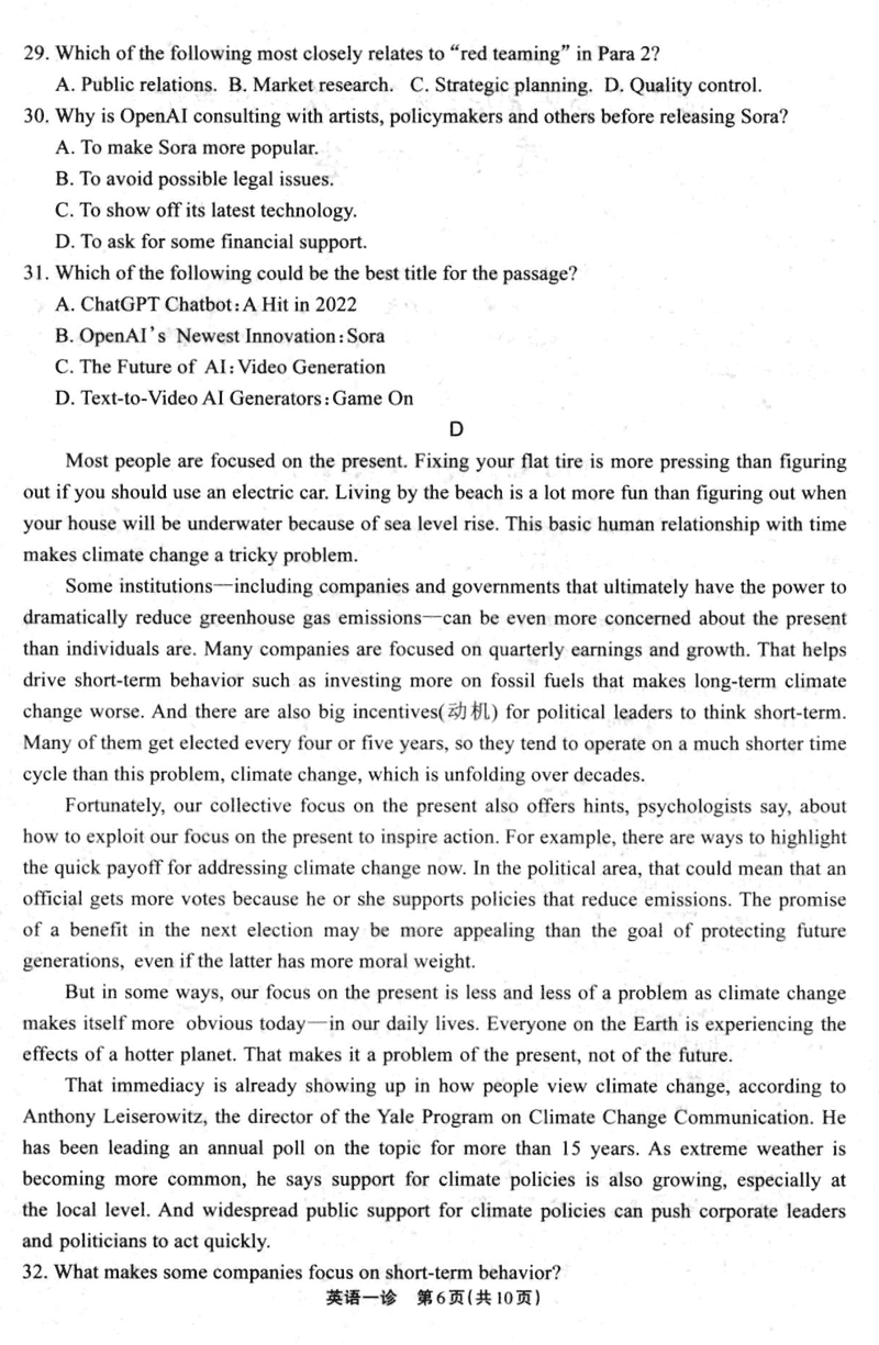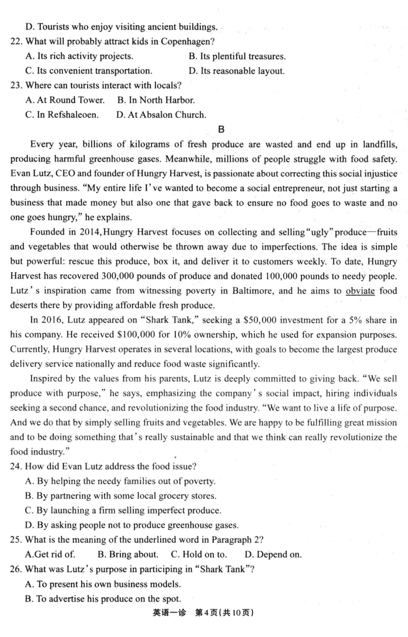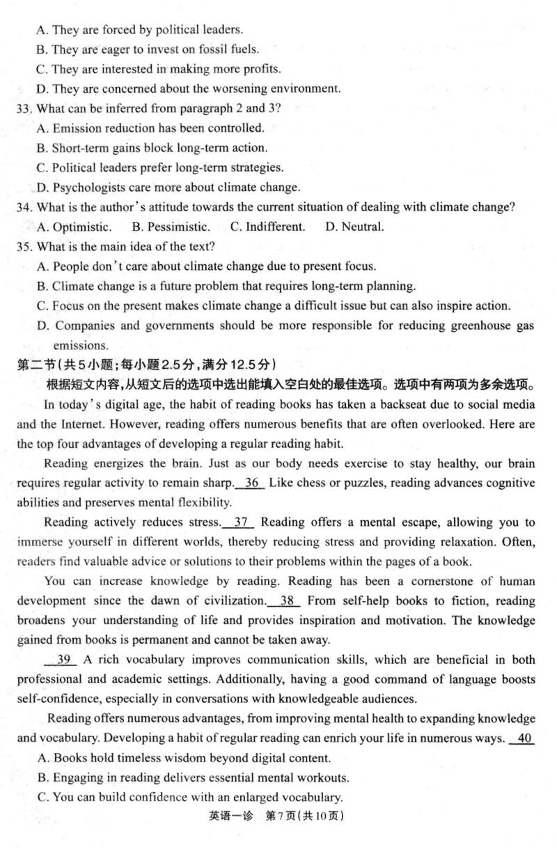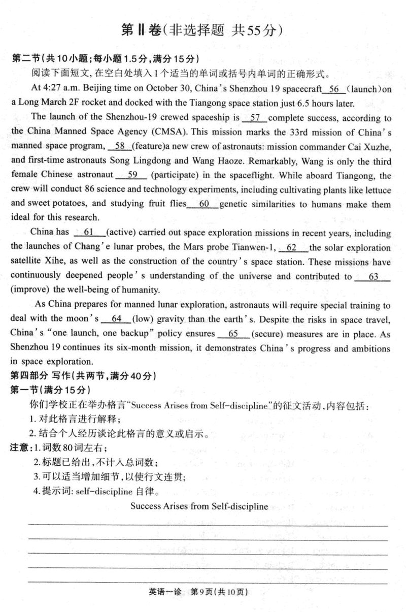 导读德阳一诊2025届高三第一次诊断英语试题质量较高,题型多样,将作为考察考生对相应考点的掌握程度,考后将及时整理试题及答案解析相关信息,以供考生学习交流!英语试题及答案解析