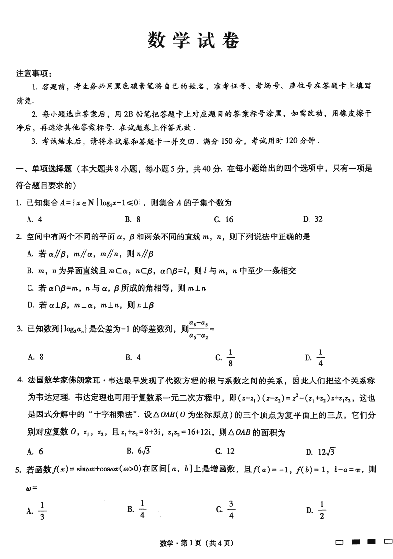 导读重庆巴蜀中学2025届高三12月适应性月考(四)数学试题质量较高,题型多样,将作为考察考生对相应考点的掌握程度,考后将及时整理试题及答案解析相关信息,以供考生学习交流!数学试题及答案解析
