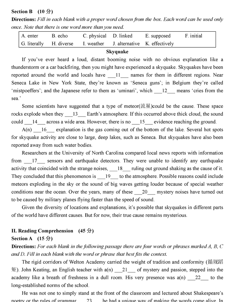 导读上海市奉贤区2025届高三上学期一模英语试题质量较高,题型多样,将作为考察考生对相应考点的掌握程度,考后将及时整理试题及答案解析相关信息,以供考生学习交流!英语试题及答案解析