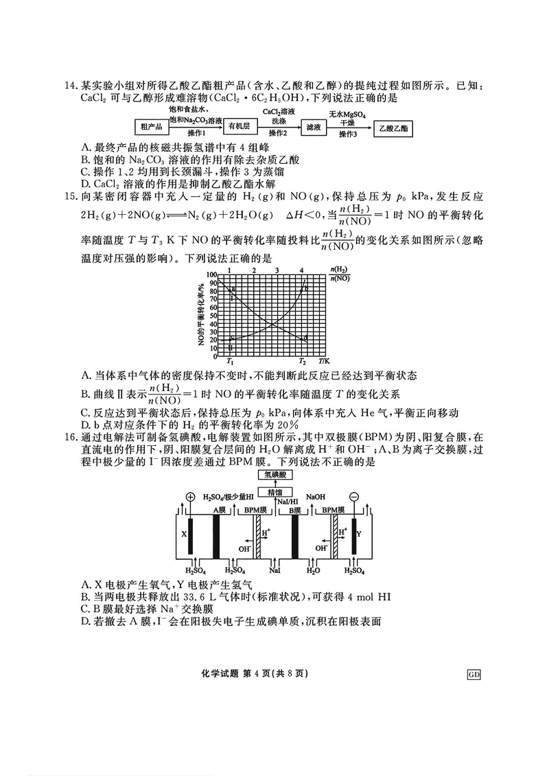导读广东衡水金卷2025届高三上学期12月联考化学试题质量较高,题型多样,将作为考察考生对相应考点的掌握程度,考后将及时整理试题及答案解析相关信息,以供考生学习交流!化学试题及答案解析