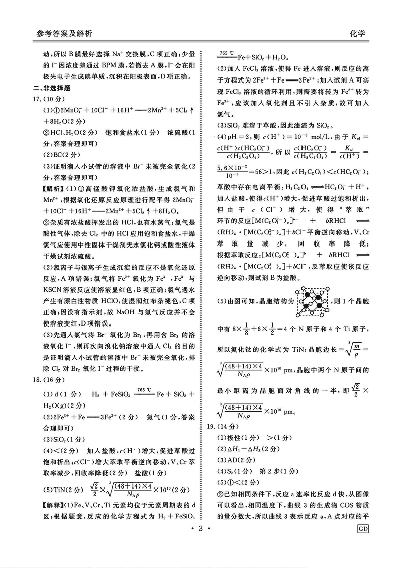 化学试题及答案解析