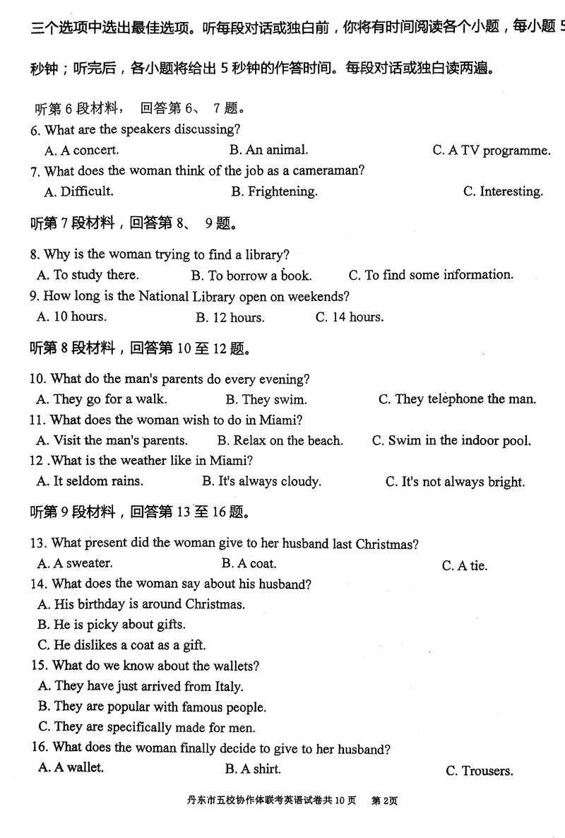 导读丹东五校协作体2025届高三上12月联考英语试题质量较高,题型多样,将作为考察考生对相应考点的掌握程度,考后将及时整理试题及答案解析相关信息,以供考生学习交流!英语试题及答案解析