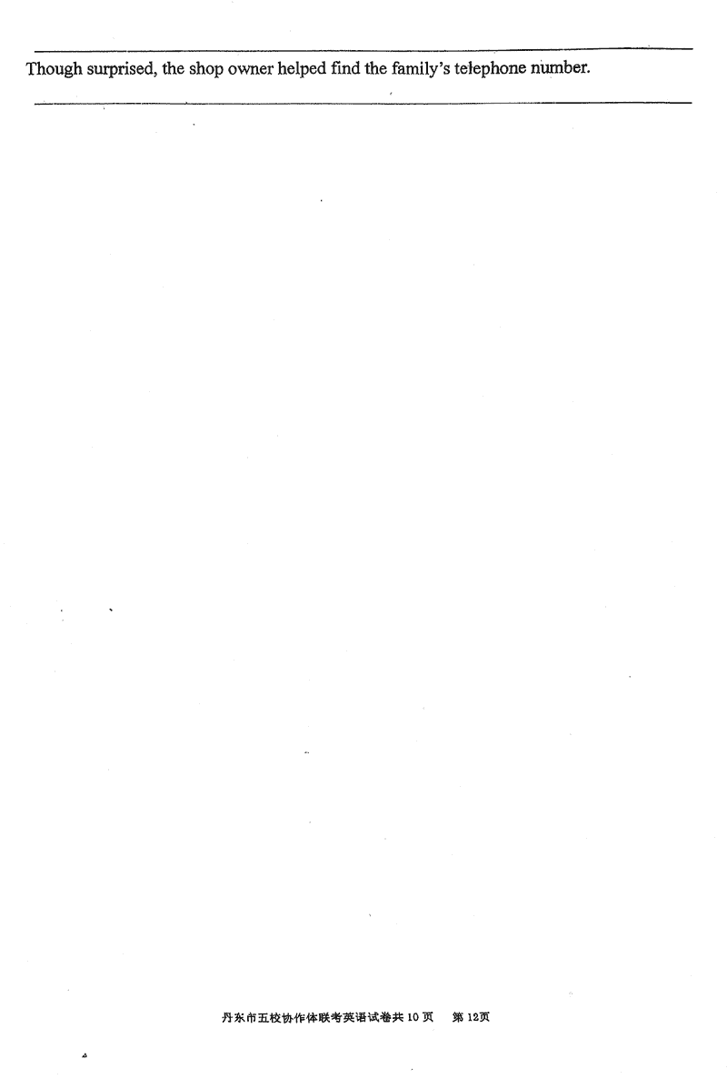 丹东五校协作体2025届高三上12月联考英语试题质量较高,题型多样,将作为考察考生对相应考点的掌握程度,考后将及时整理试题及答案解析相关信息,以供考生学习交流!